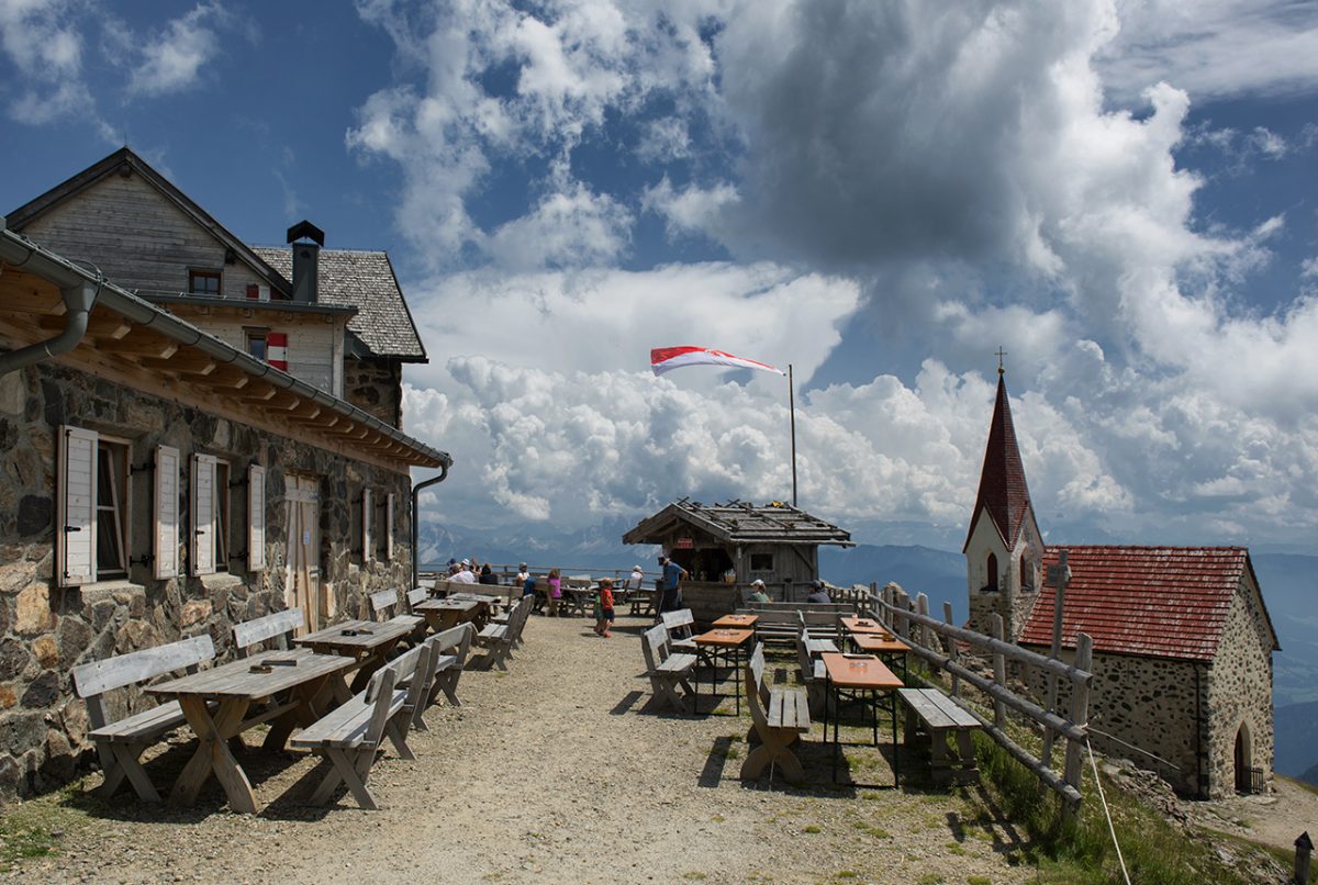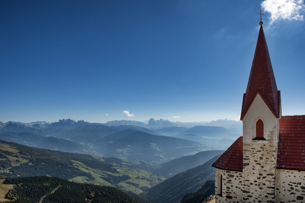 Poco distante dalla cima San Cassiano (2.581 m), nelle Alpi Orientali della Val Sarentino, si trova una chiesa singolare: il Santuario di Santa Croce di Lazfons. Collocato a quota 2.305 metri è il sito di culto più alto dell’Alto Adige e la meta di pellegrinaggio più elevata d’Europa. Dalla sua posizione si può godere una panoramica unica su molte catene e vette dolomitiche. Ma prima bisogna raggiungerlo. A piedi.