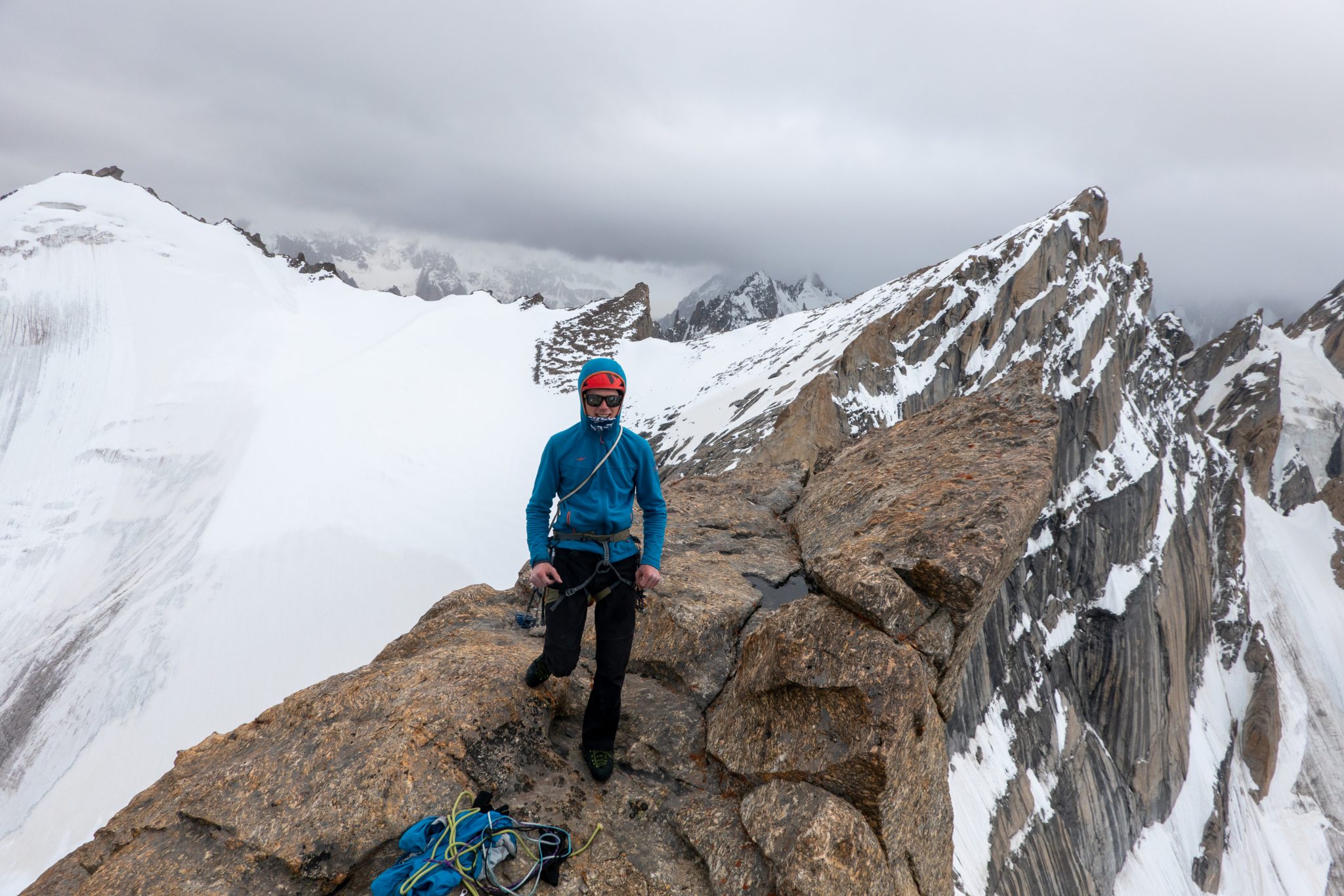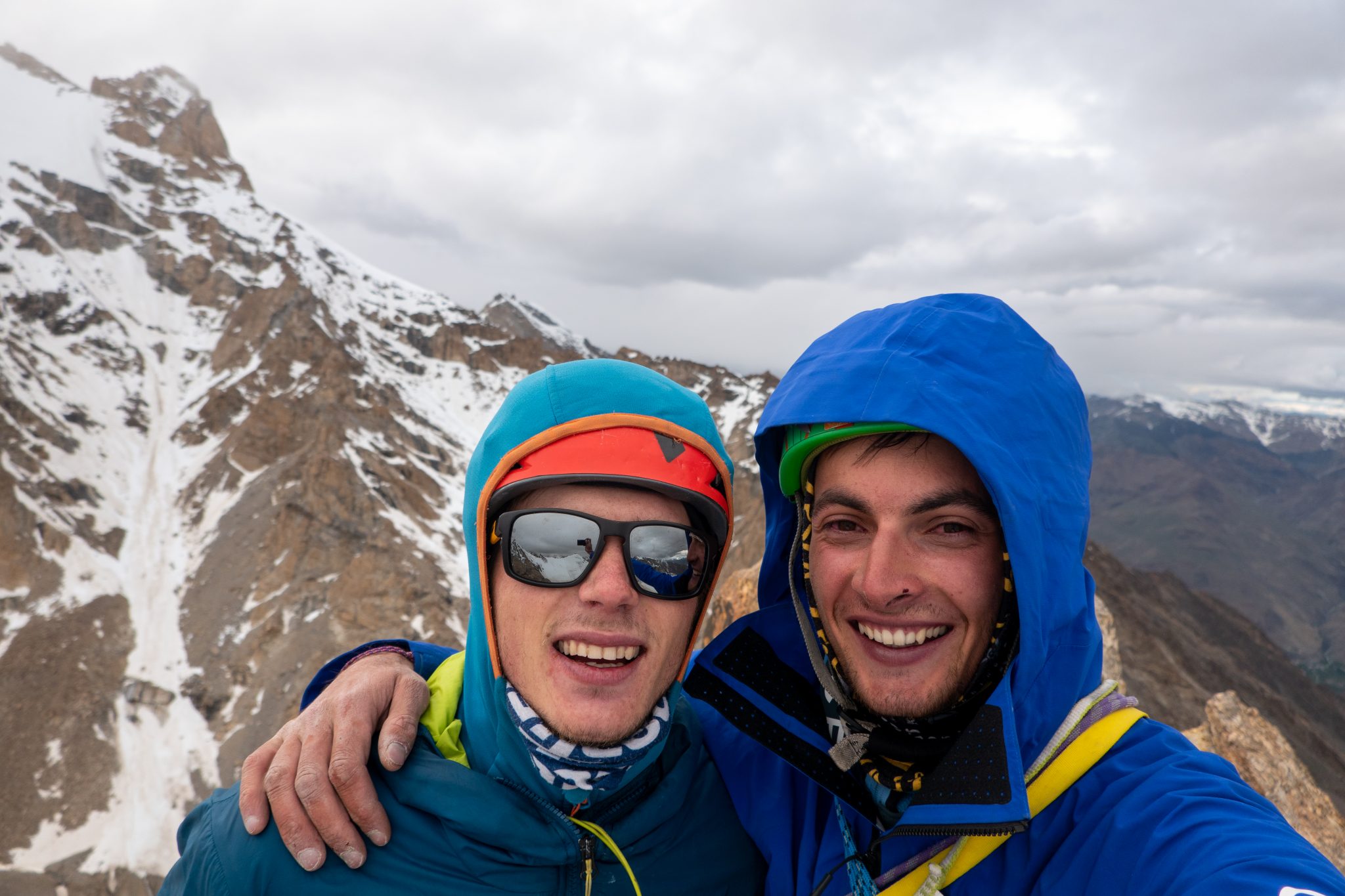 Tirler e Sigmund non si sono persi d’animo, e hanno attaccato nuovamente la montagna per il canale che si trova tra la cima secondaria e quella principale, seguendolo fin dalla base della parete. In sette ore la cordata ha raggiunto la cima del canale, condividendo i primi quattro tiri con una via aperta nel 2017 dagli sloveni Matija Jost e Matjaz Dusic.