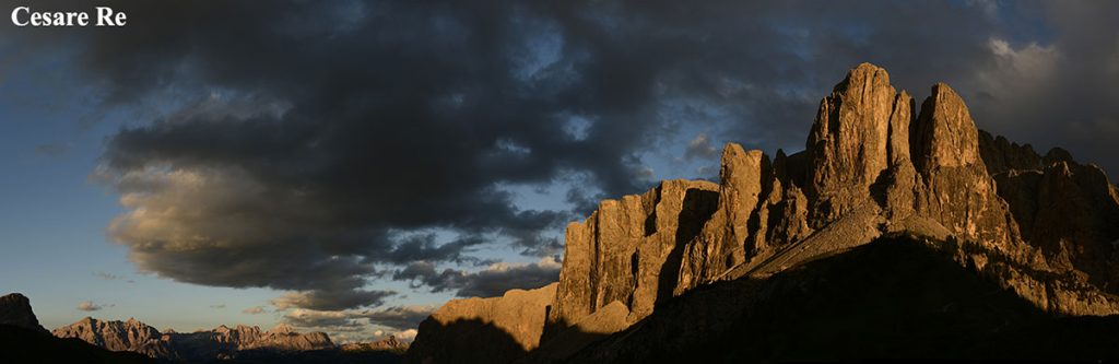 Se proprio non volete usare il computer, rimane solo il ritorno alla pellicola! Se pensate di usarlo poco, invece, qualche possibilità esiste: si prende un’ottica grandangolare, ma anche di focale diversa e si ritagliano il bordo superiore o quello inferiore, oppure entrambi, di uno scatto orizzontale. Il grandangolo, pur consentendo di inquadrare molte cime, le renderà piccole e lontane. Non si mantiene, quindi, il senso della proporzione. Se scattate con un obiettivo supergrandangolare, come un Fish Eye, tipo 15mm o 16mm (180 gradi di angolo di campo su formato FX), otterrete foto paragonabili a quelle restituite da apposite fotocamere panoramiche a pellicola, dette ad “obiettivo rotante”. In generale, il limite può essere che tagliando l’immagine, si ottengono foto a risoluzione un pò più bassa e che, come detto prima, le cime risulteranno essere lontane e piccole. Oppure, per tradizionalisti e temerari, è possibile utilizzare una fotocamera panoramica a pellicola, come descritto alla fine di queto testo. Ah, dimenticavo. Se siete Vittorio Sella, siete in grado di comporre panoramiche incredibili, usando il banco ottico e unendo magicamente le varie foto senza che si vedano i tratti di giunzione. Ma non siete Vittorio Sella! E neanche io lo sono. Vediamo, quindi, come scattare le nostre panoramiche.