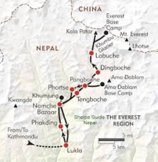 Il trekking parte da Lukla (2.840 m) un piccolo paese nella valle del Khumbu a poco più di un’ora di volo da Kathmandu, la capitale del Nepal. Il volo può far paura in quanto viene svolto con piccoli aeroplani o elicotteri e l’atterraggio è su una pista in salita incastonata dalle montagne. Gli aerei in caso di brutto tempo non partono. Verrete riprogrammati il prima possibile. L’aeroporto è considerato uno dei più pericolosi al mondo. Solo il volo è un’esperienza elettrizzante. È possibile raggiungere Lukla da Kathmandu anche con mezzi terreni ma il viaggio dura giorni in un mix di bus e percorsi a piedi.