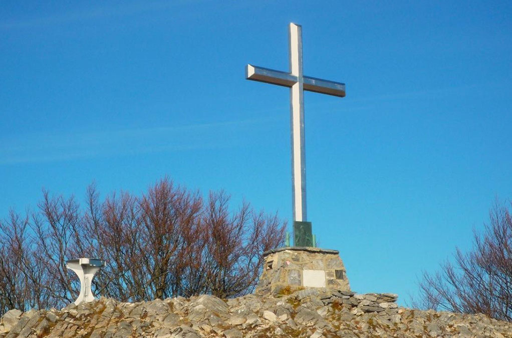 Dal Giogo di Toirano (807 m) attraversato dalla strada provinciale SP 1, si imbocca sul lato Est il sentiero “Alta Via dei Monti Liguri” (paline, segnavia bianco-rosso e AV). Oltre una linea elettrica si lambisce una pista forestale, da lasciare a sinistra per procedere sempre sul percorso, indicato con chiarezza. La dorsale è in prevalenza boscosa, ma offre alcune aperture sui due versanti, in particolare nello scavalcare il pietroso Bric Pagliarina (1215 m), da cui si rende già ben visibile la grande croce di vetta del Monte Carmo (1389 m), posta nel 1965 in sostituzione di quella eretta per l’Anno Santo 1950, ricordata tuttora dall’iscrizione alla base. Una tavola d’orientamento aiuta a interpretare il vasto panorama.