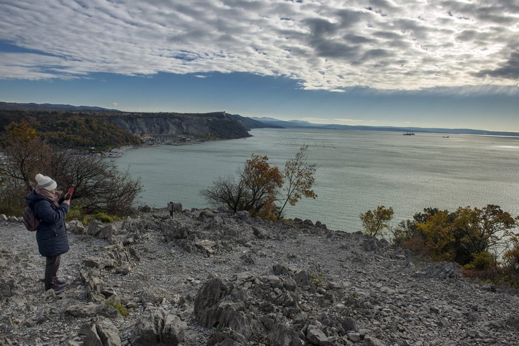 Nei tratti in cui il sentiero entra completamente nella vegetazione ci si dimentica presto del mare e pare di muoversi in un sentiero di media montagna nell’interno della montagna carsica. Poi di nuovo un affaccio, alcune rocce da cui sporgersi e ci si ricorda che si è in bilico tra mare e montagna in un’esperienza di cammino singolare. Con questa alternanza si percorre il sentiero che vede il suo termine nei pressi del Collegio del Mondo Unito, oltre il cui giardino si arriva al castello di Duino.