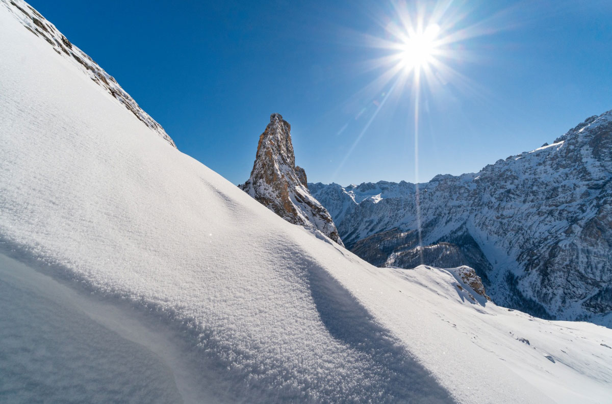 Un piccolo Cervino sul fondo della Val Maira, capace di calamitare l’attenzione degli scalatori più forti e di tutti coloro che non resistono al fascino delle salite particolarmente estetiche. Il tutto reso ancora più divertente da una quarzite di qualità e da un sistema di spigoli, placche e fessure che rende sempre varia la progressione.