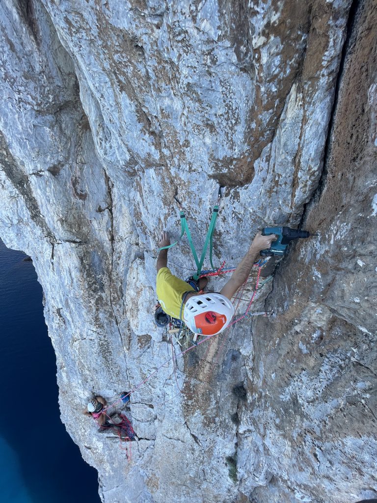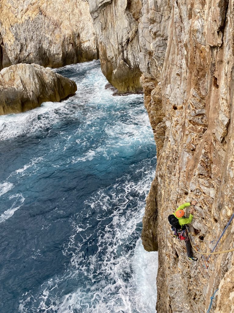 I ragazzi hanno deciso di chiodare la via a resinati, per continuità con il resto della parete. Hanno inoltre cercato di usare il materiale migliore, l’inox marino, perché sul mare la corrosione è rapidissima. Sono dunque saliti usando i pulse, e sono poi tornati a inserire la resina calandosi dall’alto. “I racconti sono un po’ tecnici, ma è stato bello viverla questa esperienza, e vivere questo luogo nelle diverse stagioni”, conclude Fiorino.