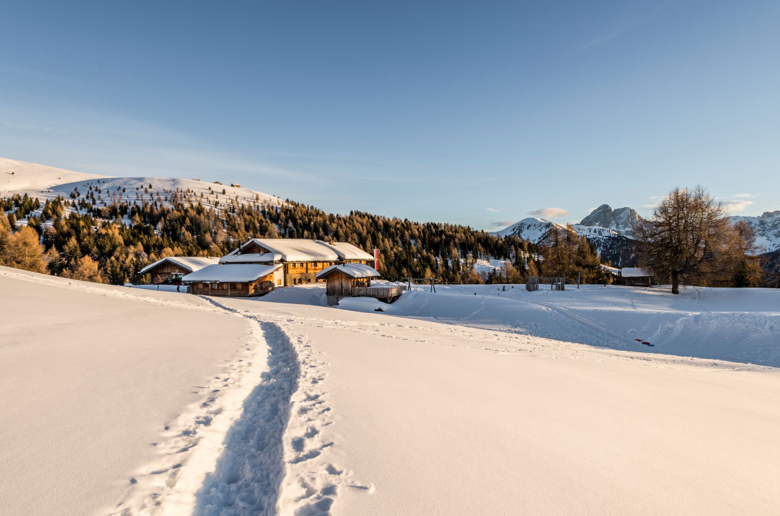 Nelle vallate e sugli altopiani della provincia di Bolzano sono numerosi i rifugi lontani dalle piste da sci ma aperti anche in questa stagione accogliendo escursionisti e skialper. A volte il rifugio è la meta della gita, spesso però è anche il punto di partenza per un ulteriore itinerario.