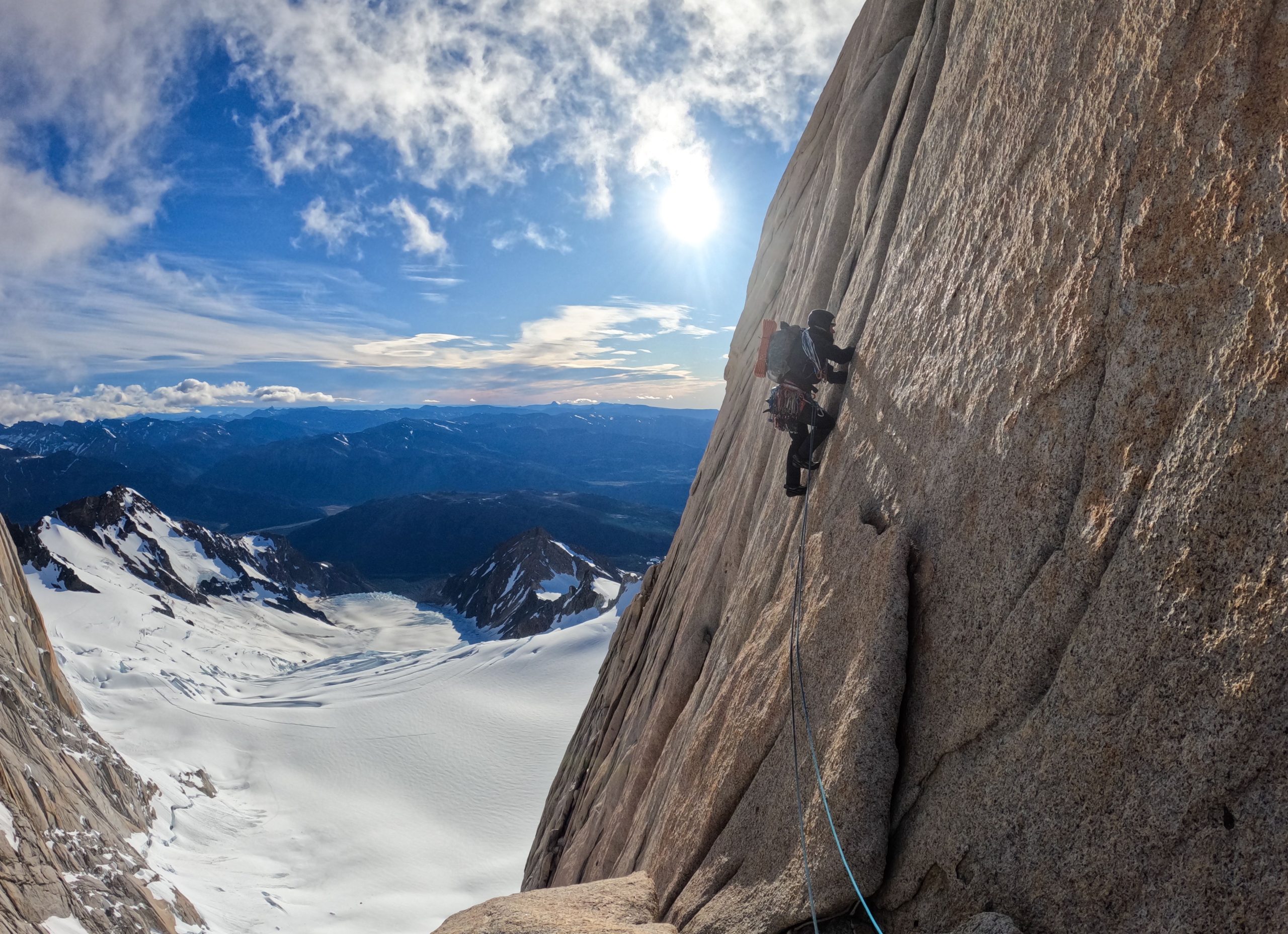 Direzione: il granito del Fitz Roy. Più precisamente il Pilastro Goretta, un siluro di 800 metri che si stacca dal Fitz Roy, una delle cime mitiche della Patagonia. Il Pilastro ha una storia affascinante. Nel 1978 una spedizione italiana parte alla volta dell’inviolato pilastro nord del Fitz Roy: sono Luigi Zen, Giovanni Maiori e Renato Casarotto. I primi due decidono presto di abbandonare il tentativo, mentre Casarotto vuole proseguire. Da solo. Il 19 gennaio 1979 Casarotto raggiunge la cima del Fitz Roy dopo averne scalato il pilastro nord in solitaria. È la prima volta che quel pilastro viene salito e ancora oggi è l’unica via aperta in solitaria. Unico sostegno morale e psicologico è la moglie Goretta Traverso che lo aspetta con pazienza al campo base. Da questo grande amore e dall’audacia dell’alpinista vicentino nasce il Pilastro Goretta.
