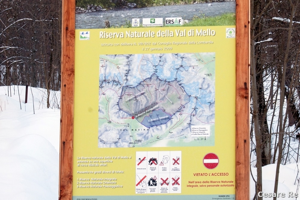 Se le condizioni della neve lo consentono, il parcheggio posto proprio all’inizio della Val di Mello può essere raggiunto in auto (in estate la strada è chiusa e si può usufruire della navetta). Attenzione, però: la strada è piuttosto stretta.
