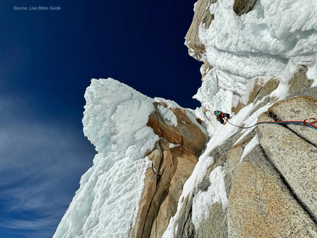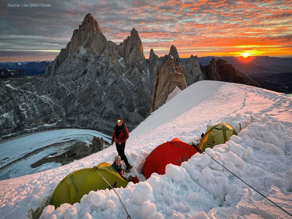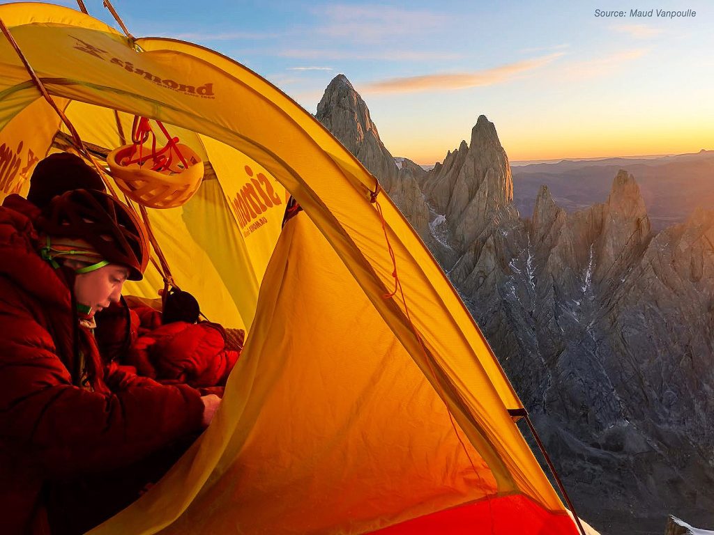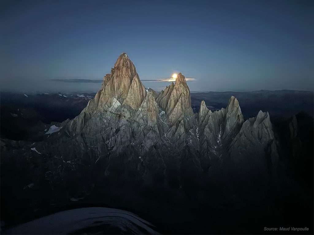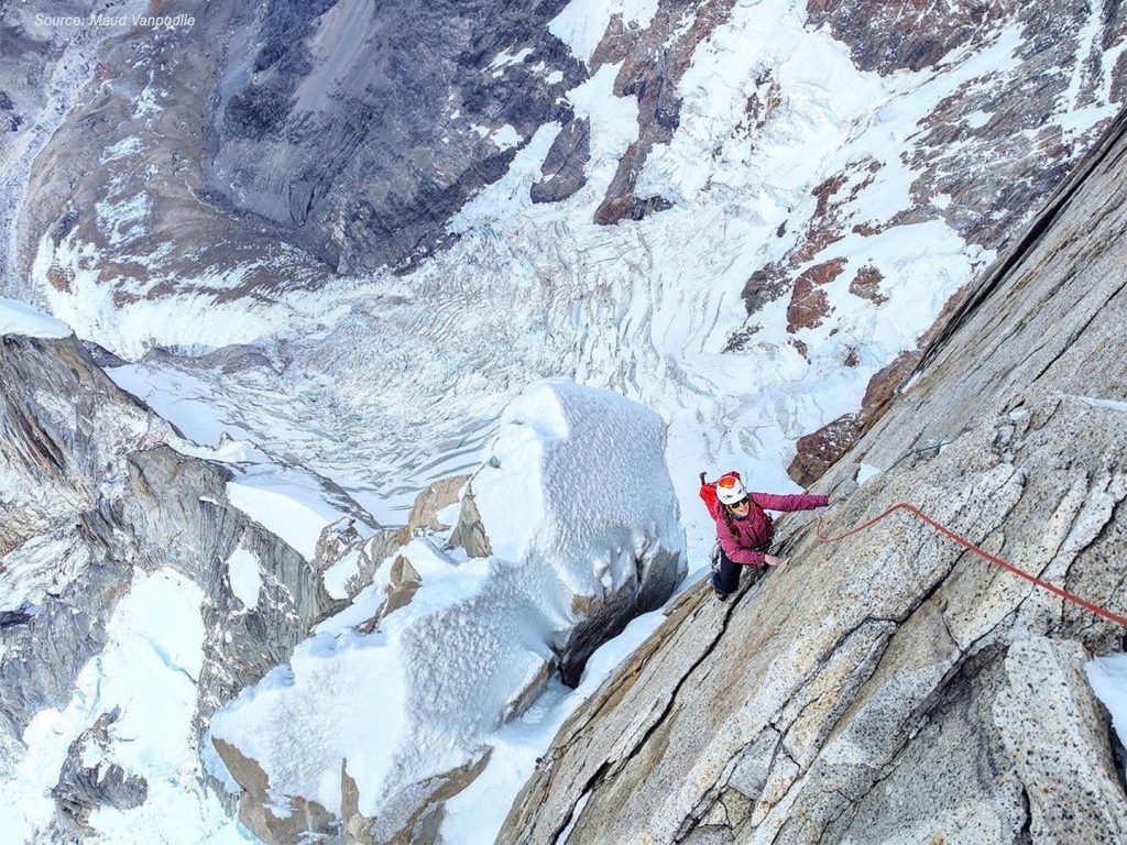 A volte l’occasione arriva proprio quando ci si sta per arrendere: è successo a Maude Vanpoulle, Fanny Schmutz e Lise Billon, che hanno atteso una finestra di bel tempo del capriccioso meteo patagonico per 40 giorni. L’obiettivo era scalare il Cerro Torre, già sfuggito due volte a Billon, vincitrice del Piolet d’Or già all’età di ventiquattro anni per la prima salita del pilastro NE del Cerro Riso Patròn in Cile.