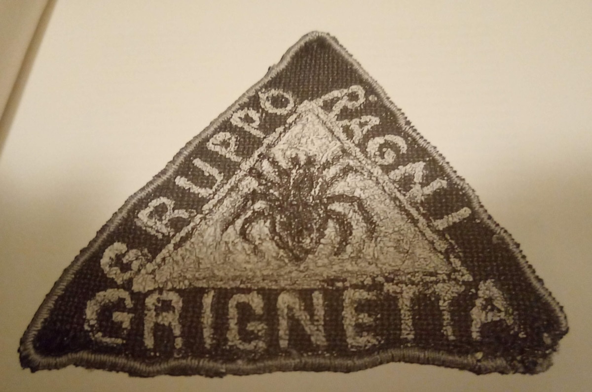 Subito arriva anche il simbolo che da lì in avanti rappresenterà l’identità del sodalizio: un ragno stilizzato, disegnato per l’occasione proprio da Nino Bartesaghi, soprannominato anche “Architetto” per le sue abilità grafiche. Nella versione originaria lo stemma è rappresentato in campo triangolare e il ragno disegnato da Nino ha otto zampe. Negli anni successivi (nessuno ricorda quando) il simbolo verrà racchiuso in un tondo e il ragno si ritroverà con una gamba in meno: un piccolo sacrificio in omaggio alla credenza popolare secondo cui imbattersi in un ragno a sette zampe sia segno di buona fortuna.