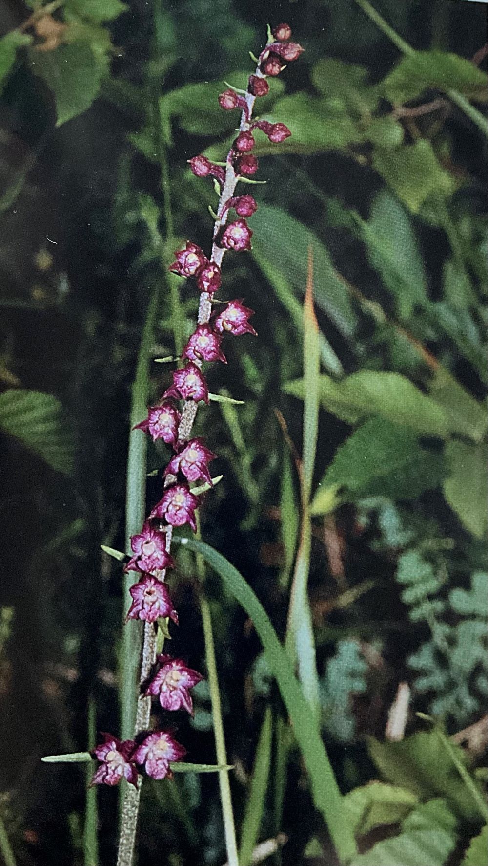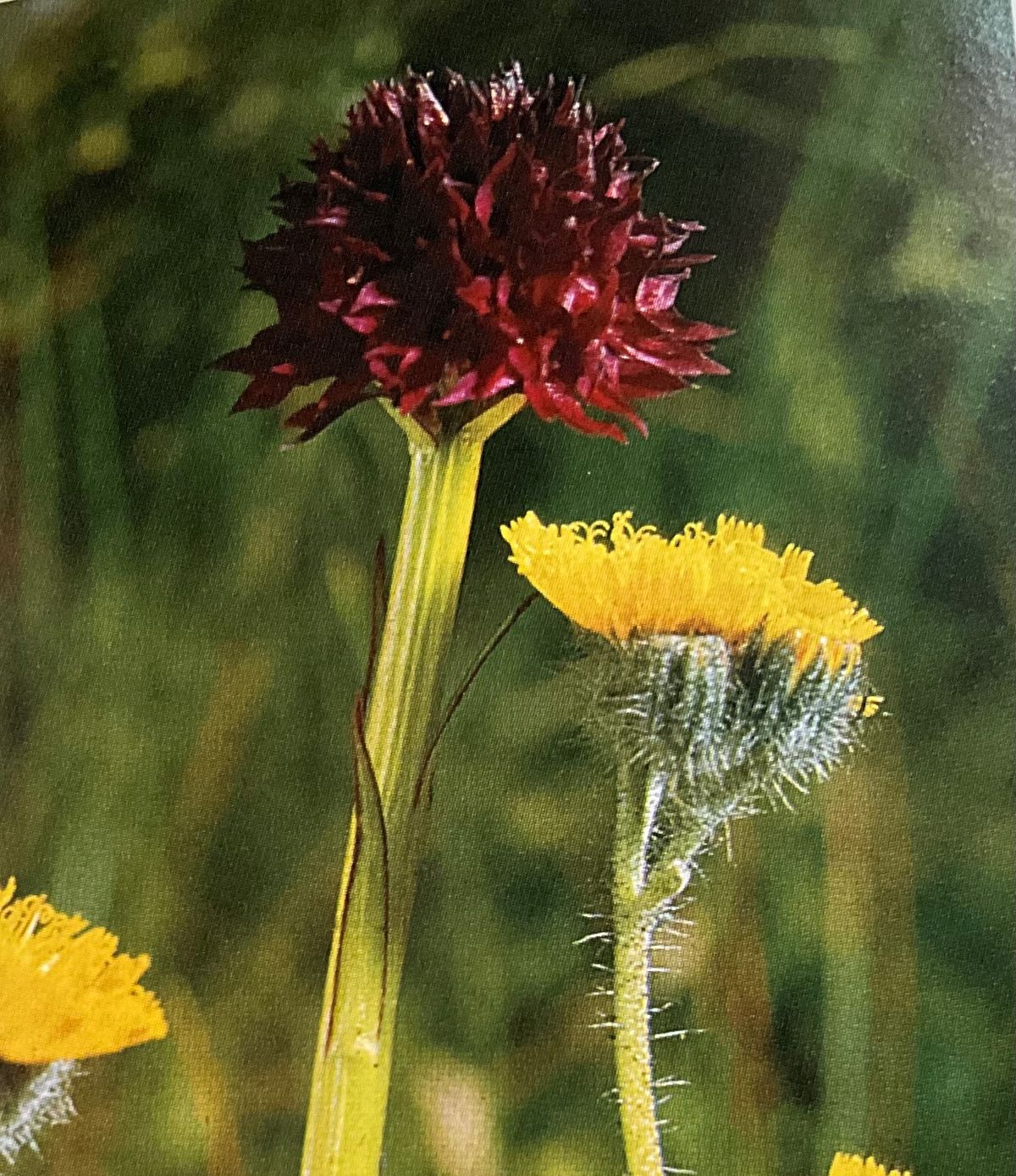 Nigritella nigra. I suoi fiori hanno un intenso profumo di cioccolato e possono presentare diverse varietà cromatiche, da colori rosso nerastri a più chiari e anche con colorazioni miste. Cresce nei prati magri e nei pascoli alpini.