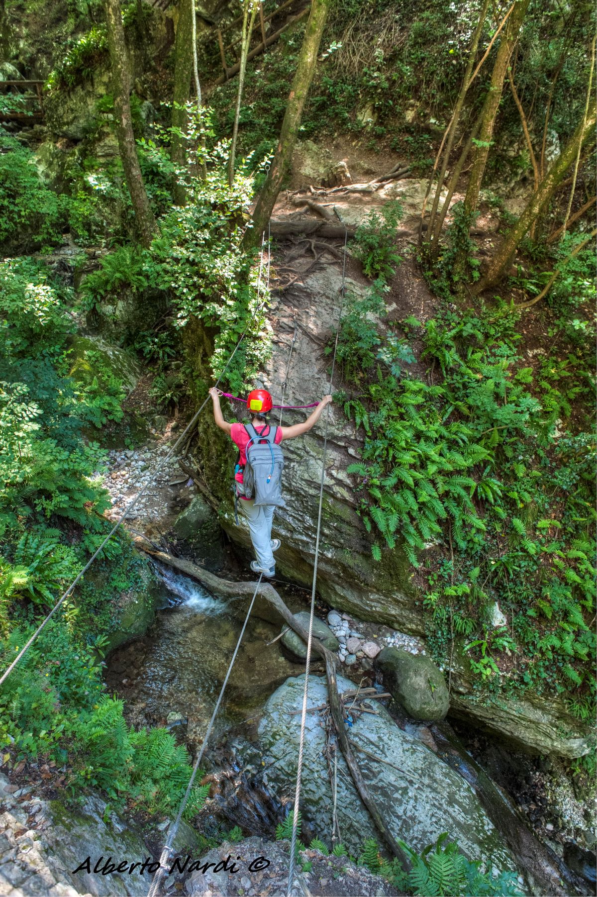 Adatto anche per chi affronta per la prima volta un tratto attrezzato, garantisce passaggi spettacolari all’interno di un profondo canyon. Il percorso termina al cospetto di un castello di origine medievale