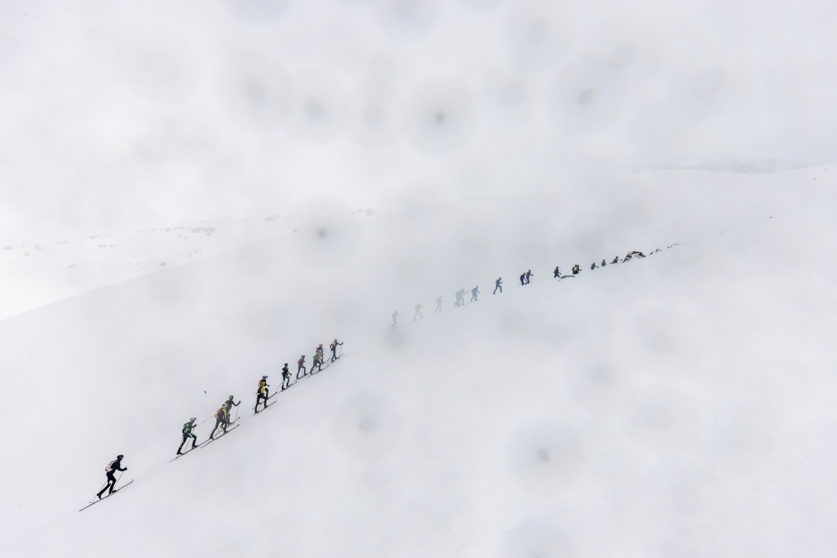 Oltre al materiale d’archivio, ovviamente c’è il racconto per immagini della gara di quest’anno. Realizzare un film su una gara di questo tipo richiede uno sforzo logistico non indifferente. Innanzitutto, per seguire lo scialpinismo devi farlo con le due gambe. E poi c’è il meteo, le partenze a orari impossibili. È tutta questione di trovarsi nel posto giusto al momento giusto.