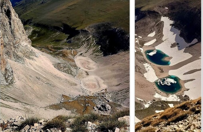 Il Lago di Pilato è scomparso completamente nel 1990 e nel 2002, e poi in tutte le estati a partire dal 2017, con l’unica eccezione del 2018, un’annata ricca di neve e di pioggia. Sei anni fa, è bene aggiungere, è stato possibile per l’ultima volta vedere il Lago come un bacino unico, mentre solitamente i laghi sono due, separati da un istmo.