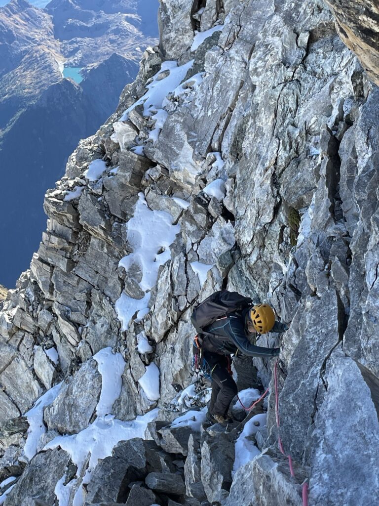 Il cielo è pulito, non si suda e i temporali sono un lontano ricordo; di nuovo il gelo e le prime spolverate di neve autunnale tengono insieme rocce e detriti instabili.
