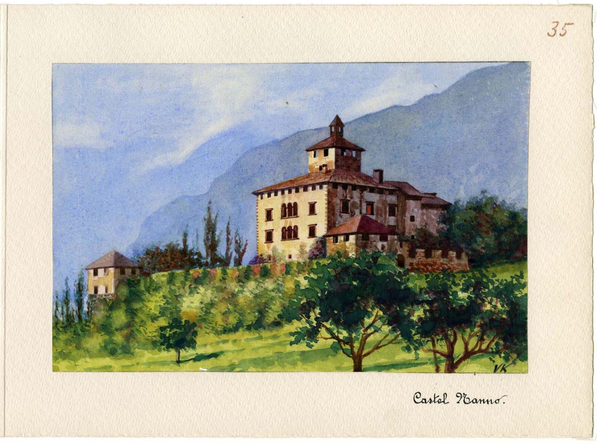 Quando prende forma il suo progetto dedicato ai castelli, Kirchner si sta avvicinando ai cinquanta. «Abbiamo esposto le 72 vedute secondo un ordine geografico: dall’Alta Val di Sole, dove c’è il castello di Ossana alla Val di Non con Thun, Valér, Cles», illustra Pancheri. «L’intento di Kirchner è quello di documentare ogni rovina, torre, edificio, quasi facesse una sorta di censimento. Si potrebbe obiettare che all’epoca esisteva già la fotografia, ma era in bianco e nero, e lui utilizza invece il colore. Sceglie sempre le migliori condizioni di luce, probabilmente per ogni veduta ha fatto più sopralluoghi. Magari ha utilizzato anche delle fotografie: non lo sappiamo. In queste opere, l’approccio di Vigilio è quello del pittore decoratore. Non interpreta, dipinge in modo didascalico con la sua sensibilità e con un’ottima mano, ma restando fuori da ogni corrente artistica dell’epoca. La sua impresa è ormai al limite di una prassi in uso nell’Ottocento. In seguito, altri pittori si soffermano magari su un singolo castello, ma lui ha ancora un intento documentario». Vigilio Kirchner è l’ultimo esponente di una tradizione di raffigurazione del paesaggio e delle rocche inaugurata nella prima metà dell’Ottocento in Trentino dalla pittrice tirolese Johanna von Isser-Grossrubatscher e poi continuata dal pittore Tony Grubhofer. I quadri e i disegni sono testimonianze importanti: le opere della von Isser, per esempio, sono servite agli studiosi dei castelli per comprendere il loro stato di conservazione nel periodo in cui lavorò l’artista.