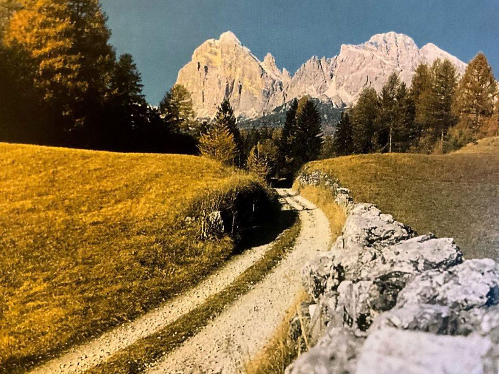 Dicevamo della vecchia Strada Regia, perché certo, in Cadore e a Cortina si giungeva anche prima della costruzione dell’Alemagna. Ma quella era una strada medioevale (chiamata Strada Regia dal 1614 conformemente alle delibere del Maggior Consiglio della Repubblica di Venezia) larga approssimativamente un paio di metri, percorsa da viandanti, carovane di mercanti, pellegrini, principi vescovi, capitàni di ventura, eserciti, mendicanti. Un percorso tortuoso, spesso pericoloso, funzionale alle esigenze del territorio, dove a contare di più era la possibilità di raggiungere ospizi, osterie, monasteri, castelli, con percorsi meno rettilinei e meno curati. Una strada lungo la quale si è scritta la Storia. Basti pensare a Tiziano che la percorse per tornare nel suo Cadore, alle battaglie dei veneziani contro l’esercito dell’imperatore Massimiliano d’Asburgo, ai capitani di ventura, ai commercianti che salivano a Perarolo per contrattare il legname poi fluitato su zattere lungo il Piave fino a Venezia, che ha costituito la principale risorsa per il suo Arsenale e per le fondamenta della città.