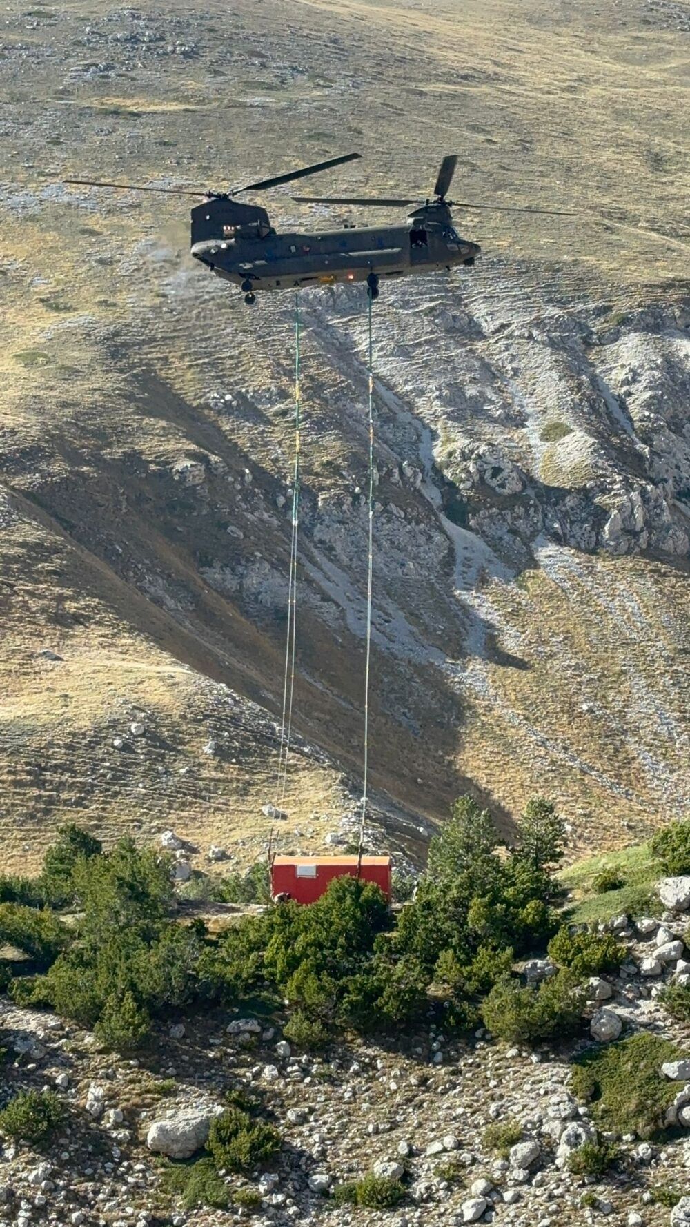 Nove giorni prima della rimozione dello storico bivacco Bafile, un altro elicottero extralarge ha portato sul Gran Sasso una struttura tutta nuova. E’ stato un Chinook CH-47F dell’Aviazione dell’Esercito a trasportare in volo nel Vallone della Fornaca, tra i monti Prena e Camicia, la nuova struttura dedicata a Piergiorgio Desiati, medico del Soccorso Alpino, che l’associazione Corridori del Cielo ha installato a 1815 metri di quota, sulla piazzola che ha ospitato a lungo il bivacco Giorgio Lubrano, dell’associazione URRI, distrutto nel 1999 da una bufera.