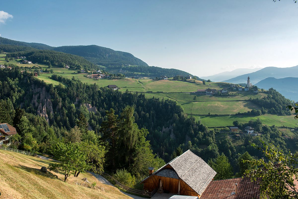 Si parte dalla stazione ferroviaria di Collalbo seguendo il segnavia n.24 in direzione Maria Saal che per un primo tratto procede in leggera discesa su strada asfaltata. Si attraversa l’abitato di Collalbo passando accanto anche ad un bel laghetto che resta sulla destra prima di uscire definitivamente dal paese. Poco oltre si segue il sentiero indicato dal segnavia che lascia la strada e avanza a mezzacosta in un bosco su fondo sterrato. Dopo circa 30 minuti dalla partenza ecco la prima delle piattaforme panoramiche create per godere della vista sulle Piramidi di Terra. Si tratta di terrazze di legno che si affacciamo sulla destra del percorso, davanti alle quali è stata sfoltita la vegetazione per poter realizzare punti panoramici di osservazione. Ce ne sono alcune a breve distanza le une dalle altre per fornire punti di osservazione diversi. Sono un ottimo luogo per sostare ed ammirare il fenomeno geologico singolare presente sull’altro lato della vallata.