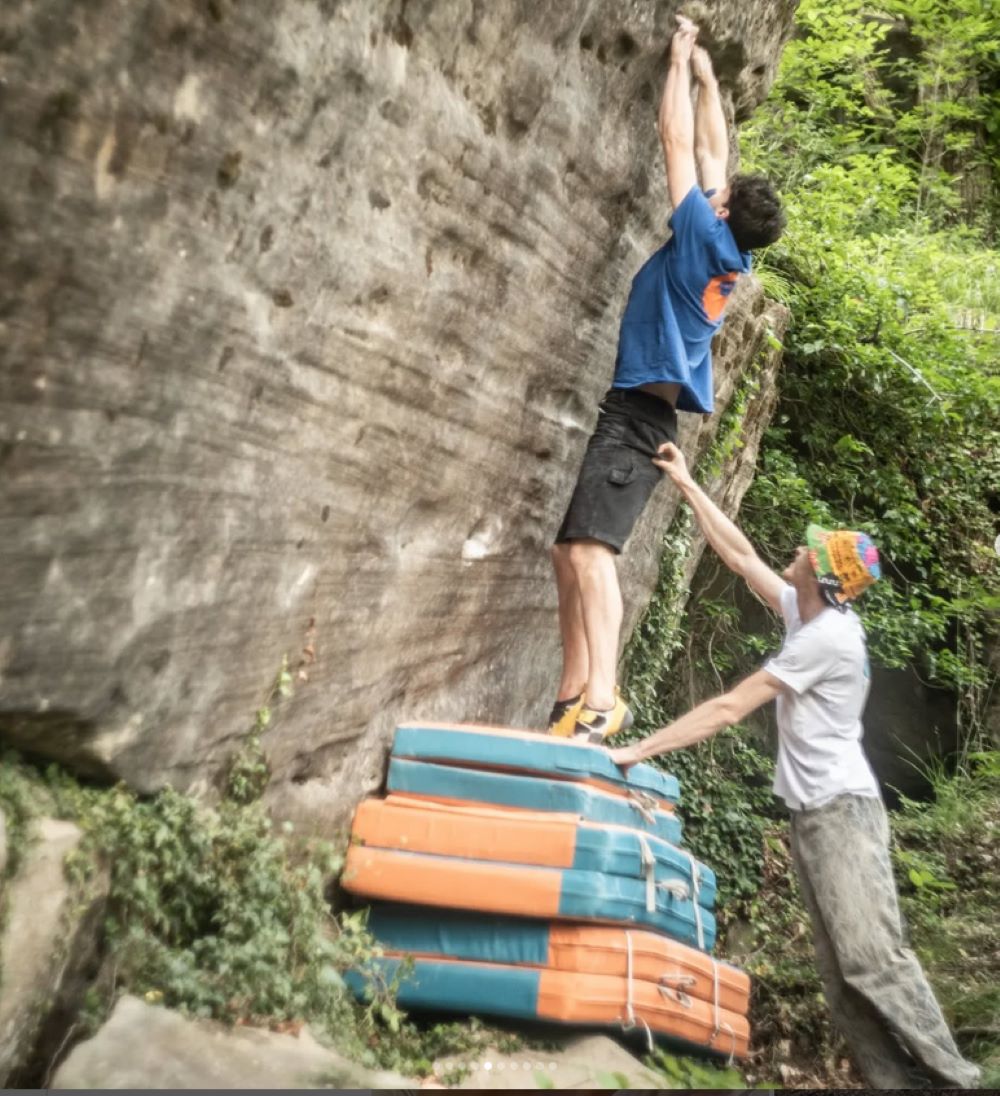 L’imprenditore “malato” di boulder si inventa produttore di crash pad e porta sui blocchi di arenaria dei Sibillini alcuni dei più forti specialisti della disciplina. Che scoprono un paradiso sconosciuto