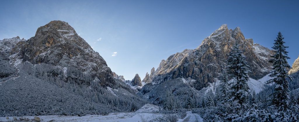 Cima Undici (3.092m) è affascinante per le sue guglie e la frastagliata linea di cresta che prosegue lungo Cresta Zsigmony fino al Popera. Le sue cime sono state a lungo contese durante la Grande Guerra. La separa da Croda Rossa il Passo della Sentinella (2.717 m) conquistato dagli Italiani il 16 aprile 1916 con un’azione rimasta nella storia. A memoria delle gesta di quei soldati è intitolato ai “Mascabroni” il bivacco posizionato su Cima Undici a 2.932m. La prima salita è di Michl Innerkofler in solitaria nel 23 luglio 1878. Tra Croda Rossa e Cima Undici si trova il Museo all’aperto di Bellum Aquilarum, che dal 2005 ha iniziato una straordinaria opera di recupero delle opere della Grande Guerra. A questo lavoro si deve la possibilità di visitare le aree dell’Anderte Alpe, di Croda Rossa e Forcella Undici. Per raggiungere le tre location, punto di partenza è Prati di Croda Rossa che si raggiunge in cabinovia da Bagni di Moso.