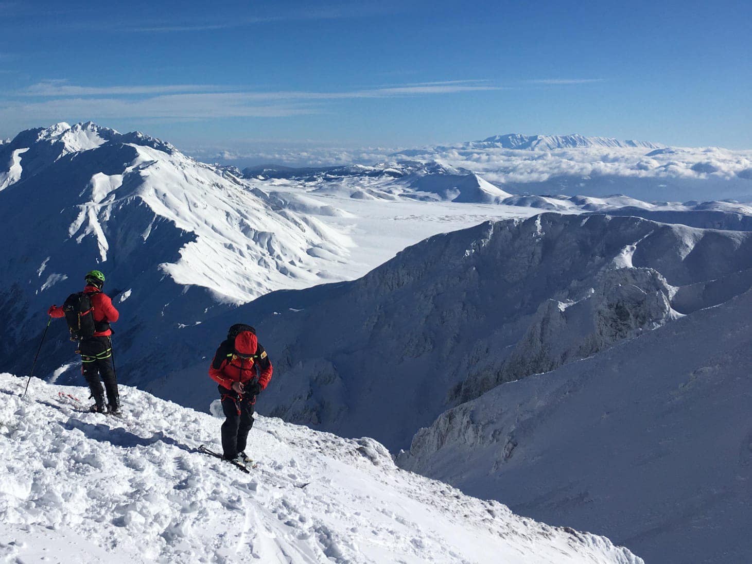 Uomini e donne del Corpo Nazionale Soccorso Alpino e del Soccorso Alpino della Guardia di Finanza si sono messi in moto subito, ma sono stati bloccati per tre giorni e mezzo dal maltempo. Il vento, con raffiche fino a 180 chilometri all’ora, ha impedito di salire dall’arrivo della funivia alla base del Corno Grande lungo l’aerea cresta della Portella. Gli accumuli di neve valangosa hanno impedito di seguire la “via bassa”, il sentiero estivo per la Sella di Monte Aquila.