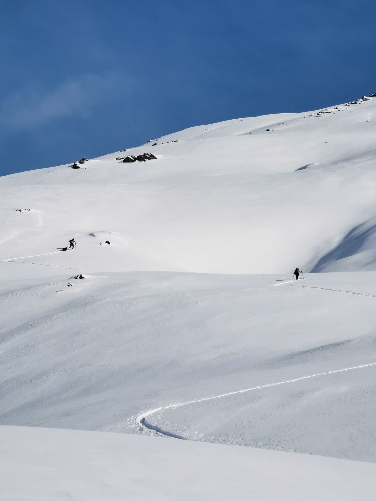Una grande classica, forse la più conosciuta a praticata, della zona. Vi è anche la possibilità, per risparmiare circa 300 metri di dislivello, di partire da Niblogo, il parcheggio estivo per la Val Zebrù. In questo modo la gita avrà effettivamente 300 metri in meno ma il tempo impiegato sarà tuttavia simile per via del lungo tratto in piano che si aggiunge al percorso. Considerando di partire da Sant’Antonio, il tracciato è semplice e molto intuitivo. Inizialmente si risale una stradina che si sviluppa a zig-zag in un bosco che lascia spazio ad ampie radure, avendo l’accortezza di seguire sempre le indicazioni per le baite Cavallaro. Giunti a quota 2000 metri, il pendio si apre e finalmente si intravedono le suddette baite. A questo punto è fondamentale tenere la sinistra e puntare alla cima (la prima a sinistra) il cui pendio è dolce e bello anche in discesa, soprattutto se dopo una bella nevicata.