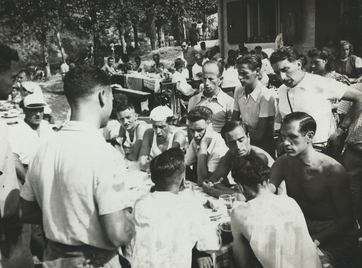 Mario Premuda era un ingegnere triestino, appassionato sciatore e alpinista, che perse la vita nelle Alpi Giulie il 27 settembre del 1931 mentre stava raccogliendo dati per una guida del Gruppo del Mangart, cadendo a causa del cedimento di un appiglio alla fine di una traversata nel Gruppo del Picco di Mezzodì. Il rifugio viene descritto allora come “una costruzione modesta, fatta con legname ricavato da baracche di guerra e debitamente adattato”, ma diventò presto un punto di riferimento, di vissuto e di ricordi per tutti gli appassionati di arrampicata della valle. “Per il nostro entusiasmo – scrive Claudio Prato nel 1940 – valeva più di un palazzo e quando scendevamo l’aspro viottolo – un rifugio che si raggiunge “scendendo”! – fatta l’ultima svolta ecco che ci salutava allegro con la tinta rossa contrastante con il grigio calcare e la bandiera che garriva al sole”. Parole scritte nello stesso anno in cui venne raso al suolo per vetustà per essere rifatto completamente – ed è anche l’anno in cui morì, poco dopo la costruzione del nuovo edificio, il triestino Emilio Comici.