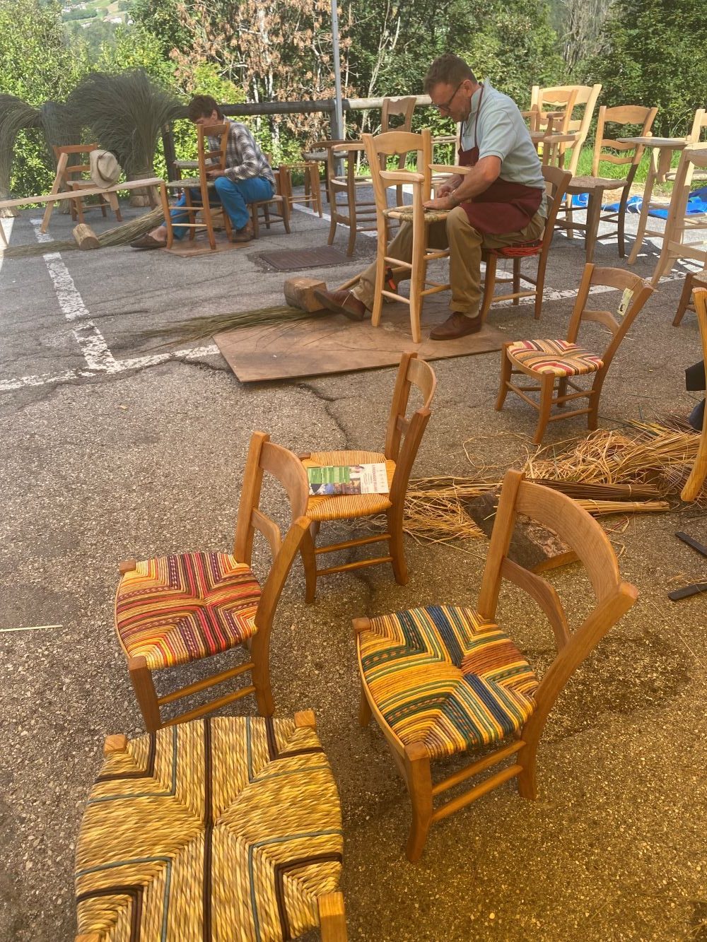 Lo apprendo durante una dimostrazione pubblica in piazza a Sagron Mis dove cinque seggiolai, di cui uno proveniente dalla Francia, sono al lavoro a favore di turisti e giornalisti in occasione della quarta edizione del Festival “Personaggio dell’anno”, che si è tenuto proprio a Sagron Mis tra il 19 e il 21 settembre 2025.