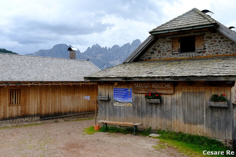 Il panorama dai pascoli della Malga Bocche è bucolico e rilassante, con prati  d’ampio respiro circondati da abeti imponenti. Basta, però, volgere gli occhi al cielo per ammirare le rocce grigie delle Pale di San Martino e quelle scure dei Lagorai che svettano oltre la coltre verde del bosco. L’ambiente ondulato e verde nei dintorni della malga ha contribuito al conferimento del titolo di “Malga più bella del Trentino”, ottenuto nel 2015. L’escursione è un semplice anello, che si snoda, per la maggior parte, nel bosco e su sentieri molto semplici e ben segnalati. In alcuni tratti sono visibili le tracce della devastante tempesta Vaia, con alberi sradicati e radici che puntano, innaturalmente, verso il cielo, un’estetica di morte che si contrappone al profumo intenso di resina e corteccia.