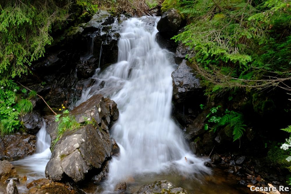 Si costeggia ora il Rio Bocche che accompagna l’ultimo tratto di salita con melodiose cascatelle, sino a spuntare sui prati limitrofi alla malga. Voltandosi di spalle, la catena delle Pale si erge in tutta la sua magnificenza, ergendosi oltre le verdi punte degli abeti, con il Cimon della Pala che assume un’estetica particolarmente fine ed elegante. Ancora pochi passi in modesta salita e si raggiungono le strutture della Malga Bocche (1945 m), con panorama ancora più ampio che spazia anche sui Lagorai. Di spalle spiccano le vette scure di Cima Bocche e del gruppo di Lastè. Si seguono ora le indicazioni per Paneveggio, rientrando ancora nel bosco, su semplice sterrata che scende mai troppo ripida. Si arriva, quindi, a Paneveggio, col Centro Visitatori e il recinto dei cervi. Si cammina ora a lato della strada asfaltata (circa 1,5 km), deviando per Passo Valles e tornando, in leggera salita, al punto di partenza.