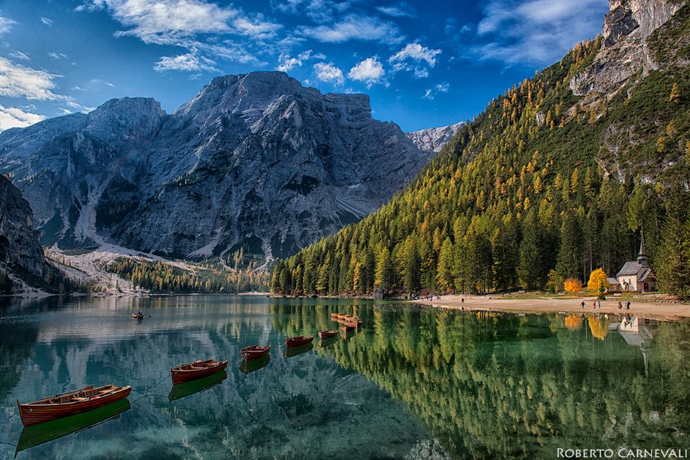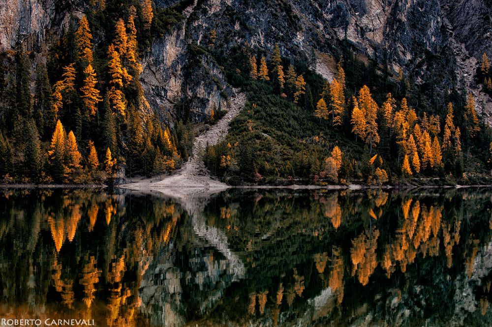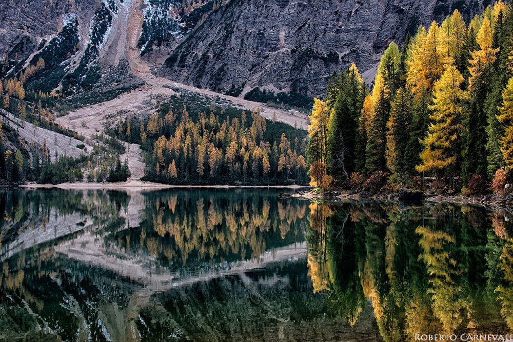 Le foglie degli alberi che ingialliscono o si arrossano si possono osservare in molti boschi delle nostre montagne, anche se alcuni scenari sono più affascinanti che altri. In Alto Adige uno dei luoghi più scenografici dove osservare il foliage è il Lago di Braies (Pragser Wildsee in lingua tedesca).