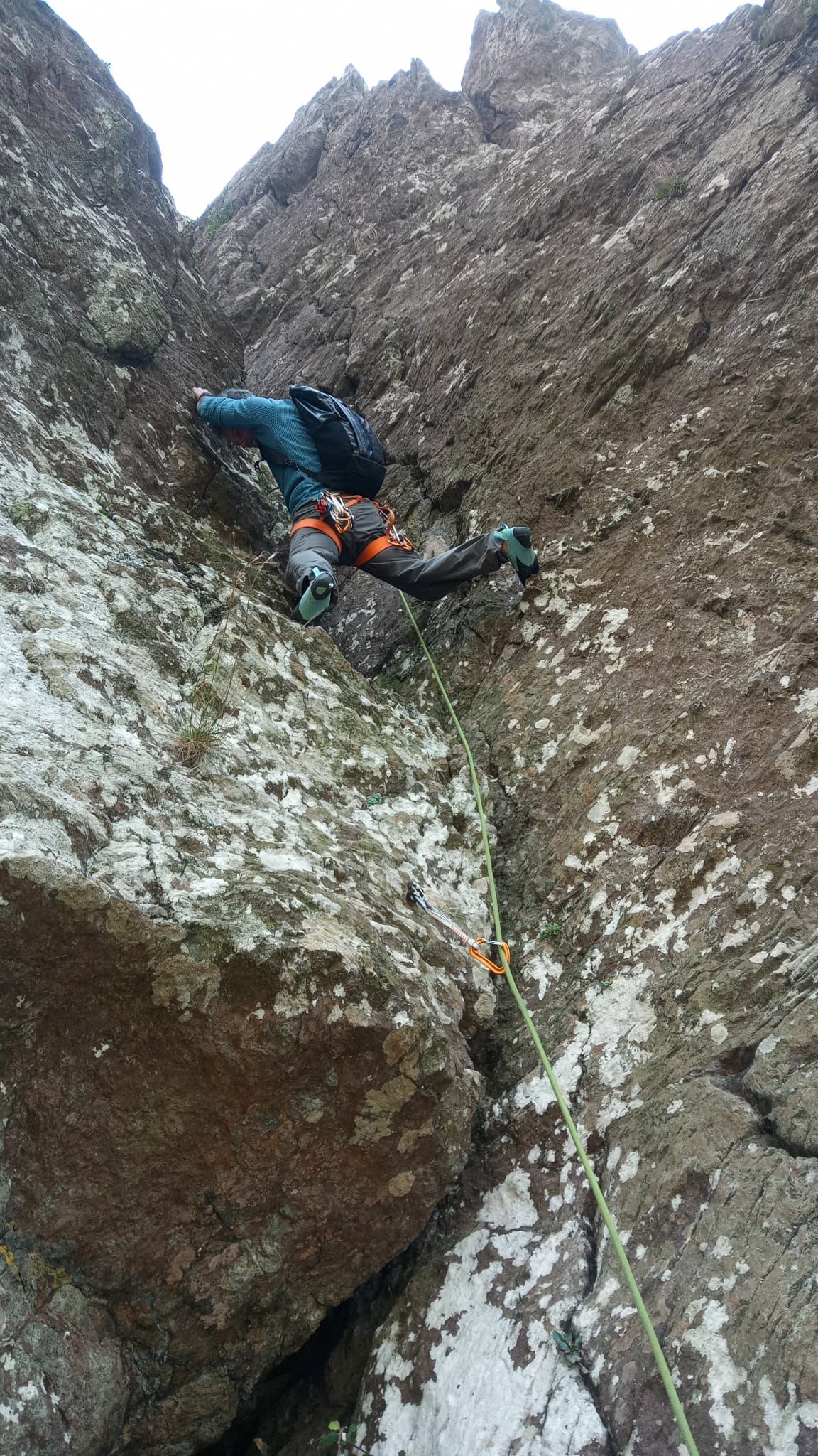E’ incredibile, mentre si scala si prova un senso di lontananza dalla città che sta qui dietro, eppure di vicinanza al cuore della Terra. Gli appigli, un po’ a bitorzoli, le piccole fessure, il diedro finale addirittura richiama l’atmosfera alpina, pur in una scalata breve. Fino alla sommità, dove il mare si apre davanti agli occhi, e il vento sembra portare con sé i cetacei del Mediterraneo, silenziosi custodi del golfo.