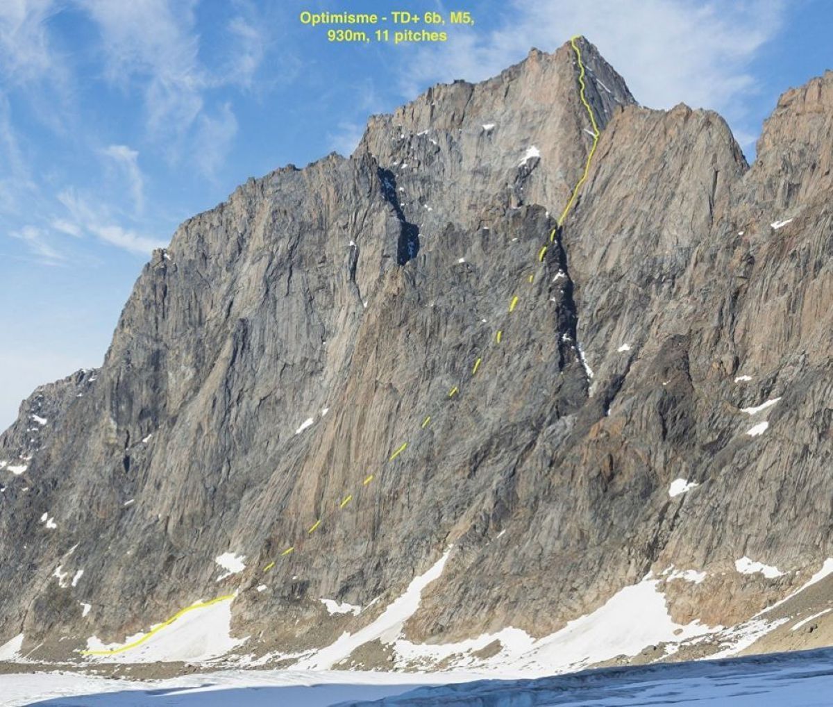Ben Kent e Robbie Milne si sono sbizzarriti sulle pareti di granito della Groenlandia quest’estate. La loro spedizione è iniziata con tre giorni bloccati in un hotel della capitale Nuuk, poi i due sono riusciti a raggiungere il luogo del campo base in canoa. Diversi giorni e sforzi dopo, si sono portati a casa tre nuove vie su altrettante big walls. Queste si trovano nell’area del Lake Tasserssuaq: Optimisme (TD+, 6b M5, 930 m), Duddon Valley Syndrome (E3/4, 6a, 610 m) e Simon’s Route (E3 6a/A1, 868 m).