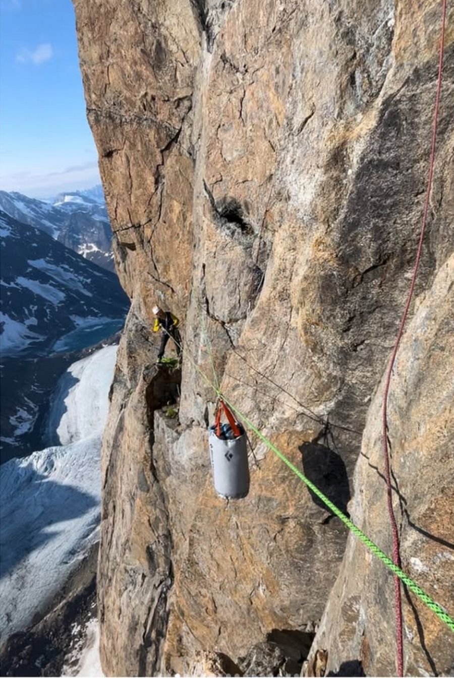 A proposito di quest’ultima via, Kent ha scritto su Instagram: “Il nostro dispositivo aveva smesso di funzionare, per cui non avevamo accesso alle previsioni meteo. Il cielo sembrava sereno, il vento non troppo forte, quindi abbiamo deciso di andare. La linea era perfetta. Ottima roccia, tiri solidi, navigazione della parete abbastanza facile, e una piccola e poco confortevole cengia a metà parete che ci ha permesso di riposare. Temevo che lo spigolo finale ci desse dei problemi ma con qualche trucchetto, tra cui una salita di 50 metri, un traverso e una disarrampicata, siamo riusciti a farcela. Ho scalato da primo per 17 ore su questa linea, alla fine stavo scalando in uno stato piuttosto delirante, per cui il grado potrebbe essere impreciso. Dovrete andarci per scoprirlo”.