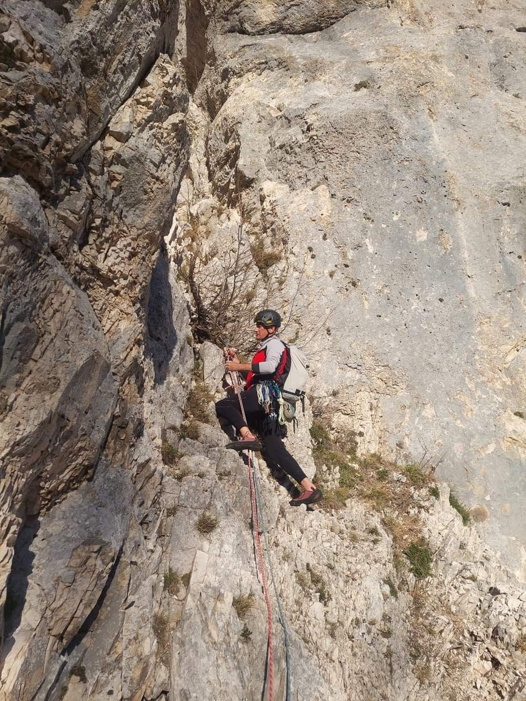 “Tra i cambiamenti causati dal terremoto, oltre alla forra da cui si esce a sinistra, c’è la sparizione di una fessura dove Franco Alletto e Paolo Consiglio nel 1955 avevano lasciato due cunei di legno. A tre tiri di corda dalla fine, si deve affrontare un lungo traverso su terra, dove affiorano dei blocchetti di roccia” racconta ancora Minnozzi.
