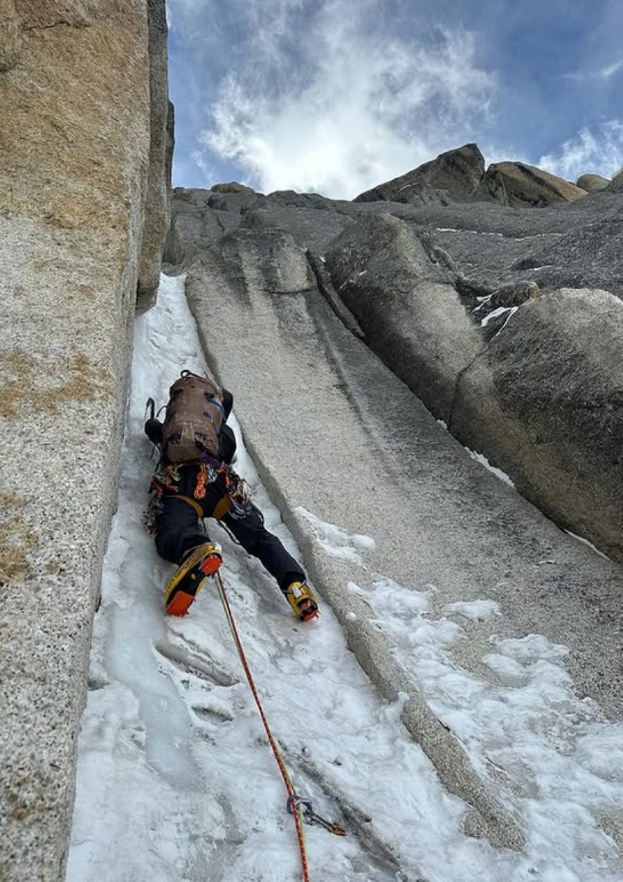 Una volta arrivati sul posto, si sono resi conto che il granito che in foto sembrava solido era in realtà piuttosto instabile. “Il pilastro centrale, l’unica linea chiaramente al sicuro dai seracchi, sembrava terribile. Alla base si erano accumulate enormi quantità di detrito fresco, e la parete mancava di debolezze naturali. La discesa sembrava quasi impossibile, e scendere dall’altro versante era del tutto illegale, per cui abbiamo dovuto rinunciare”.