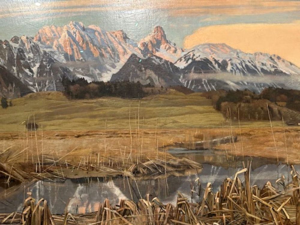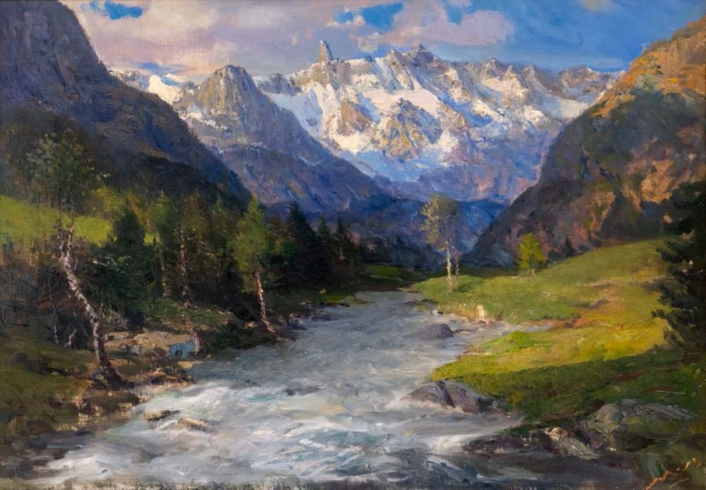 La montagna è dimensione dell’anima anche in Giovanni Segantini. Le vette e il mondo dei montanari sono spesso protagonisti della produzione dell’artista, che ha vissuto a lungo in Engadina. In Pomeriggio sulle Alpi del 1892 (Ohara Museum of Art, Kurashiki) è raffigurata una pastorella con le pecore, appoggiata a un albero, con le montagne sullo sfondo. Non c’è contrasto fra la donna e il paesaggio, è perfettamente inserita in un contesto che le appartiene. «La montagna è il ventre che accoglie uomini e animali», commenta il critico d’arte.