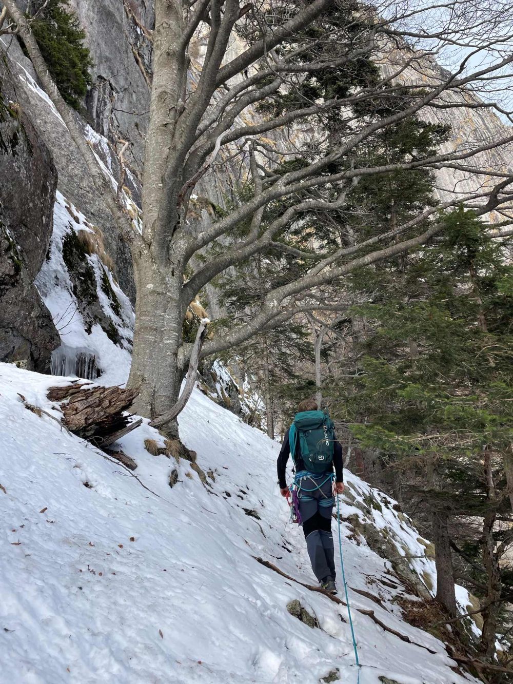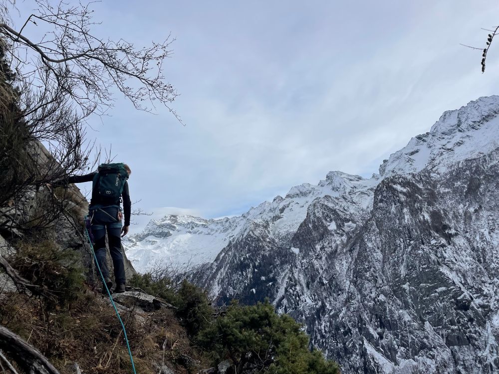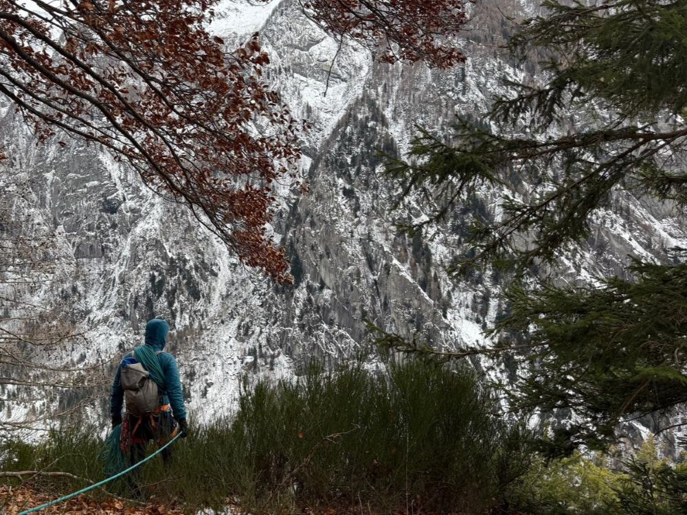 Poca neve per iniziare a scivolare, cielo velato per mettere le mani sulla roccia e un gelo che comincia a farsi sentire. È la combinazione perfetta per muoversi ai margini dell’inverno, quando l’ambiente concede spiragli di esplorazione e al tempo stesso impone prudenza. Occasioni rare, che invitano a deviare dai sentieri noti per avventurarsi su terreni improbabili, dove le linee non sono tracciate ma intuite.