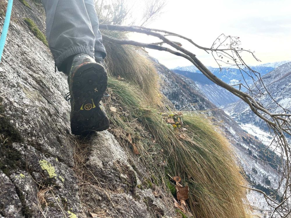 L’unica vera indicazione è paradossale: solo se non lo cerchi, si svela. Bisogna accettare di fallire, di tornare indietro a ogni passo, perché è facile ritrovarsi su sottili cenge senza uscita, con ciuffi d’erba che precipitano nel vuoto. Occorre ascoltare il filo sottile che unisce lembi di vegetazione aggrappati alla verticalità del granito, lasciarsi condurre dall’ambiente più che dalle aspettative.