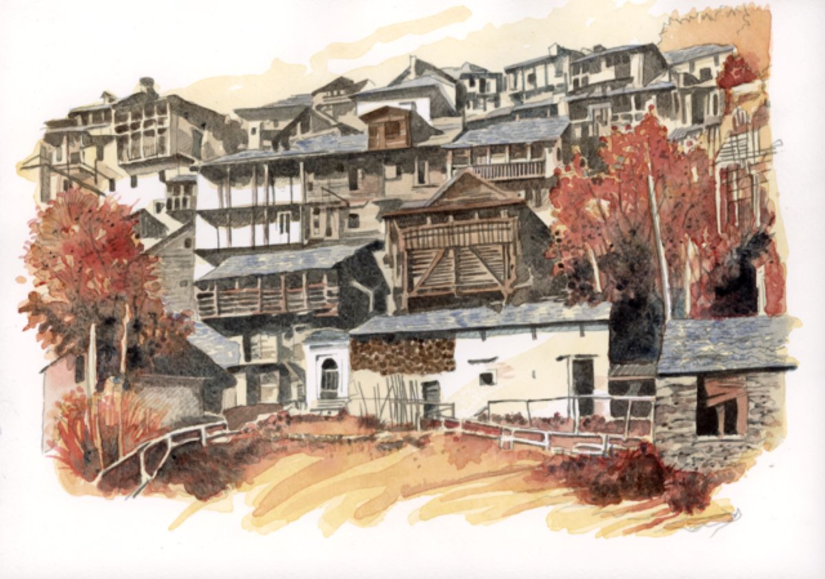 Ad ogni villaggio è dedicato un testo approfondito ma vivace, come se l’autore volesse dare una voce forte e chiara alle antiche pietre di quei borghi silenti. Dove corre l’obbligo di fermarsi per cogliere dettagli e lasciarsi avvolgere dalle emozioni trasmesse da tutto quello che si para davanti agli occhi. Senza fretta, come fa Marcarini. Non solo per scelta intima, ma anche più banalmente “perché devo lasciare asciugare i colori sul foglio”.