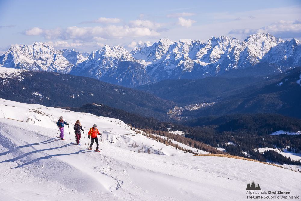 Facile escursione con le ciaspole nella Valle della Rienza, con vista sulle Tre Cime di Lavaredo