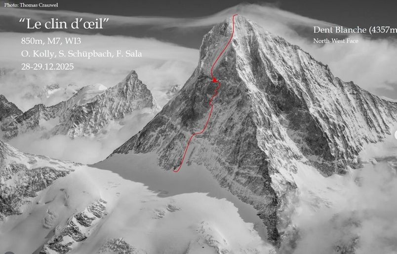 Negli ultimi giorni del 2025 Sylvan Schupbach, con Filippo Sala e Olivier Kolly ha aperto una nuova via sulla Nord della Dent Blanche, quarta vetta del suo progetto “6 pareti Nord dimenticate”. Le prime tre cime sono state il Nesthorn, scalato con Peter Von Kanel e Carlos Molina, la Punta Pioda con Roger Schaeli e Filippo Sala e l’Aiguille du Triolet con Tom Livingstone e Filippo Sala.