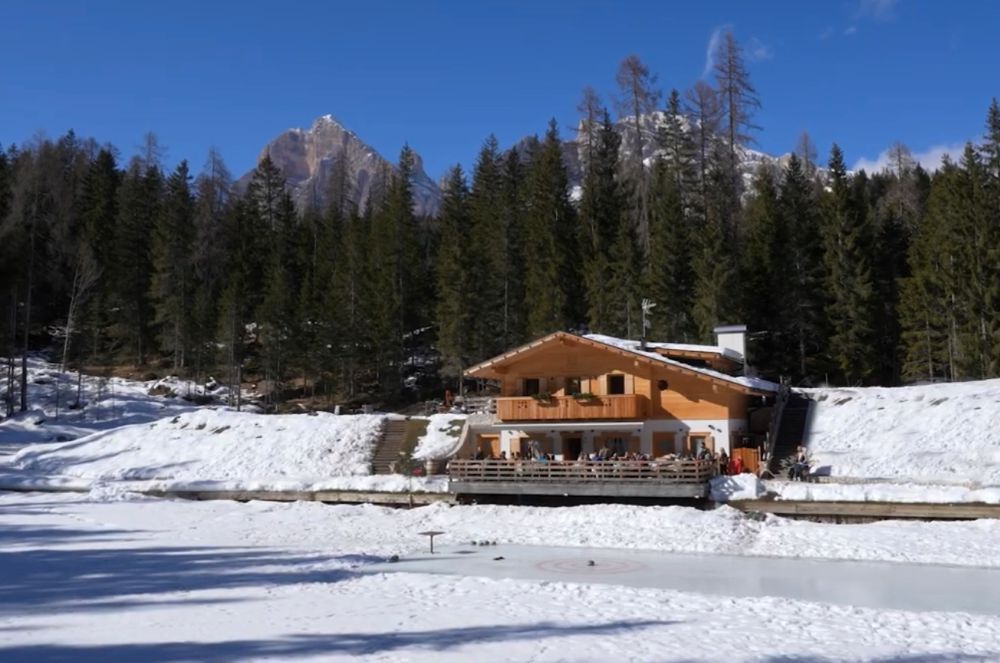 Il Lago d’Ajal è un piccolo specchio d’acqua ghiacciato immerso nel bosco a 1472 metri di quota, dove c’è la possibilità una sosta al rifugio omonimo. Il posto, incantevole e silenzioso, è nascosto alla vista dal fondovalle. Siamo sotto il Beco d’ Ajal, e si raggiunge dopo aver camminato con le ciaspole o su neve battuta lungo una strada forestale con alcuni tratti più ripidi. La passeggiata è comunque facile (consigliati i ramponcini). Si parte da Campo di Sotto (1126 m), 3 km dal centro di Cortina d’Ampezzo; sono 370 m di dislivello. Mettere in conto un’oretta. Chi se la sente dalla deviazione per il lago d’Ajal, può proseguire dritto e salire fino a Malga Federa(1816 m, aperta anche d’inverno), superando 690 metri di dislivello da Campo di Sotto. Tempo di percorrenza: 2 ore e mezza. O ancora procedere fino al Rifugio Croda da Lago (2046 m) con 926 metri di dislivello dal punto di partenza. Quest’ultimo si affaccia su un altro magnifico lago ghiacciato al cospetto della croda omonima. Fino a Malga Federa il fondo è quasi sempre battuto. Possibilità di ritorno con lo slittino.