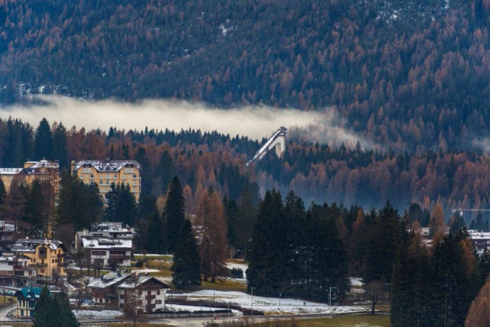 Finalmente il glorioso Trampolino Italia, che ospitò le gare di salto dei Giochi olimpici del 1956, è stato ristrutturato. Allora venne giudicato il più bel trampolino del mondo. Non verrà più utilizzato come impianto sportivo ma resterà sulla collina morenica della frazione di Zuel, come una splendida icona di Cortina. E per questo vale una visita. Certo, il trampolino è visibile anche dalla strada statale 51 che giunge nella Regina delle Dolomiti da Sud, la principale via di accesso, ma giungerci a piedi con una piacevole passeggiata di circa 3 chilometri dal centro di Cortina, lungo il tracciato dell’ex ferrovia delle Dolomiti, è una buona idea. Si può arrivare alla ex stazione di Zuel. Da lì è possibile ammirare tutto il trampolino: la rampa di lancio, il dente, la zona di atterraggio, le tribune e il grande anfiteatro della zona di frenata. Il restauro ha recuperato i colori originali ( bianco, rosso rubino, rosa dolomia, azzurro). Così questa mirabile opera progettata dall’ingegner Piero Pozzati, attraverso la quale l’Italia volle lasciare un segno anche nell’architettura, torna a risplendere.