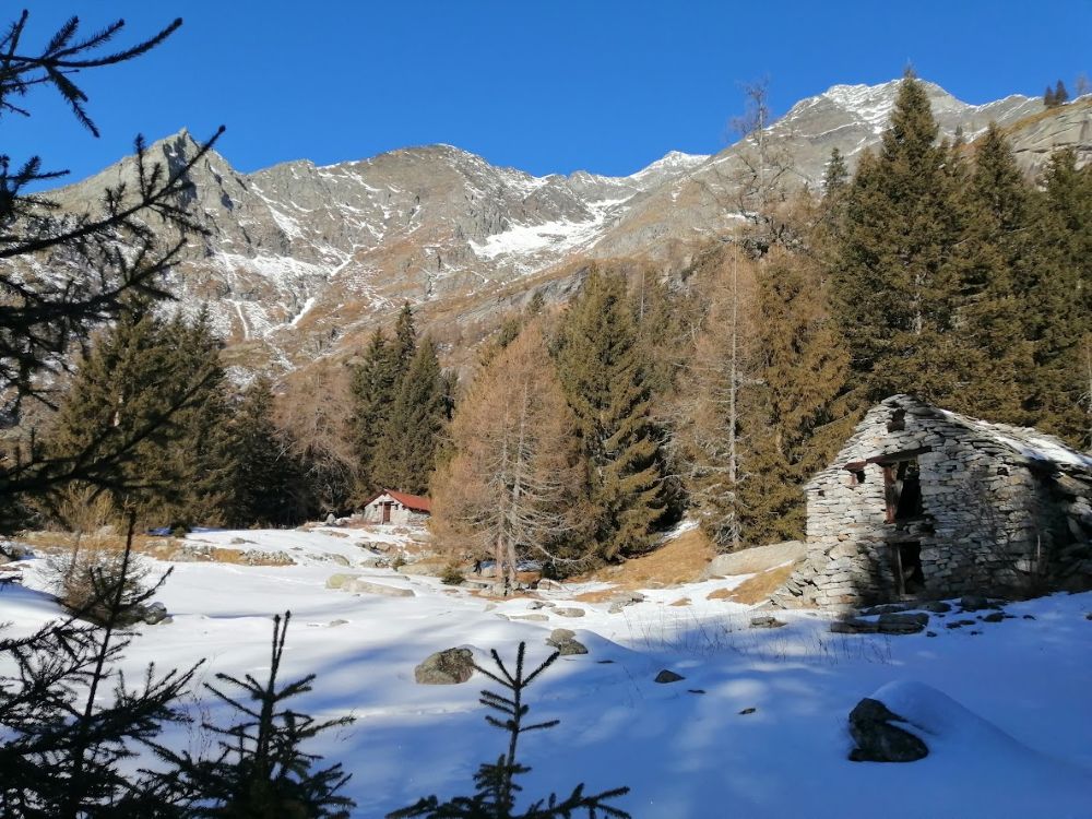 Basta mezz’ora, per esempio, per salire dalla frazione di Isella con le ciaspole fino al Lago delle Fate, gioiello già fin troppo instagrammato. Dal lago si può poi proseguire senza difficoltà inoltrandosi nella Val Quarazzaper un’altra quarantina di minuti fino a Crocette (detta anche la “Città morta) dove si trovano i resti degli antichi stabilimenti per la lavorazione dell’oro estratto dalle miniere sovrastanti.