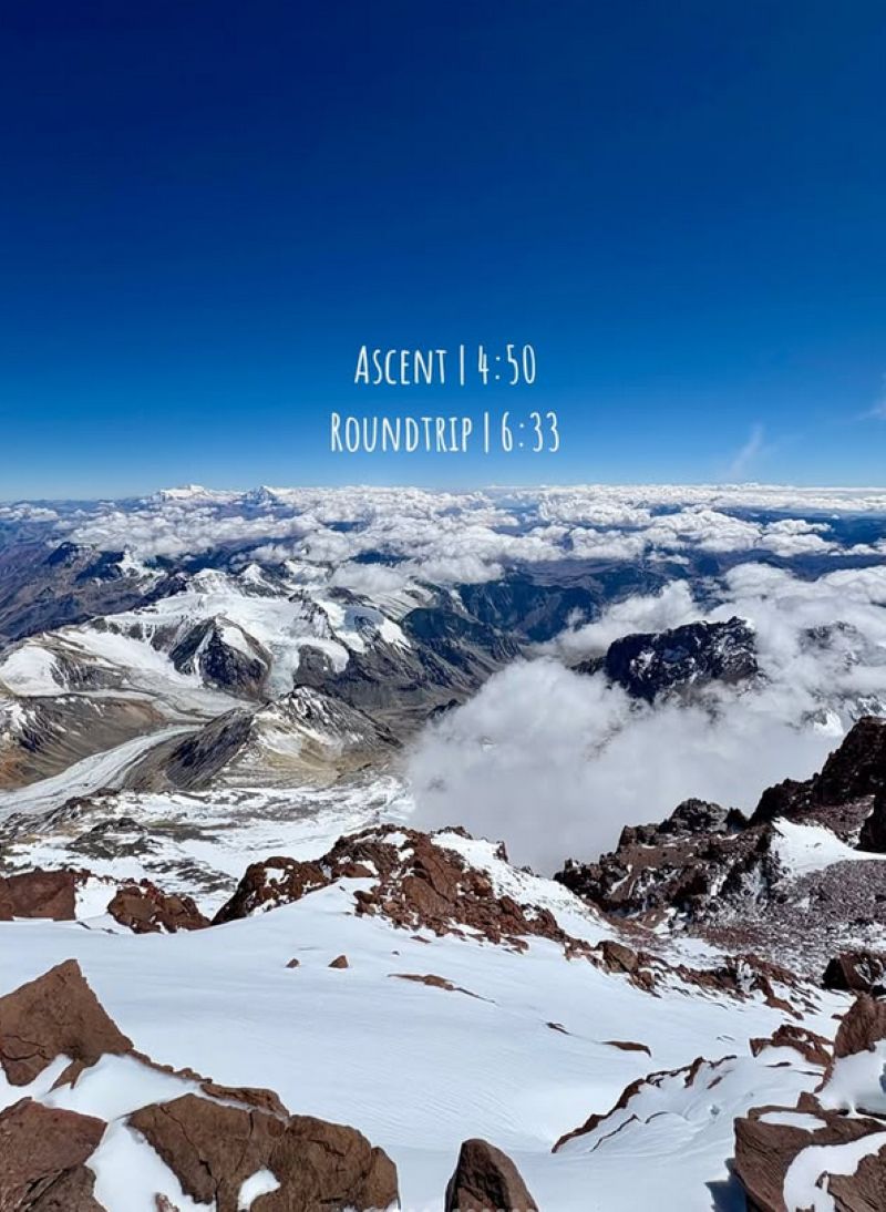 L’atleta statunitense ha impiegato 6 ore e 33 minuti per effettuare il percorso di andata e ritorno tra il campo base di Plaza de Mulas e la vetta più alta del Sud America