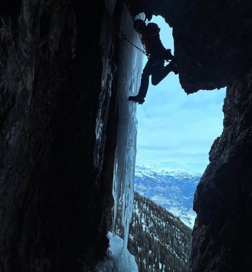 Tra le salite effettuate in precedenza dalla coppia Gietl-Messini spiccano Eywa sul Sass Pordoi, Shiwa’s Ice sullo Shiwling in India.