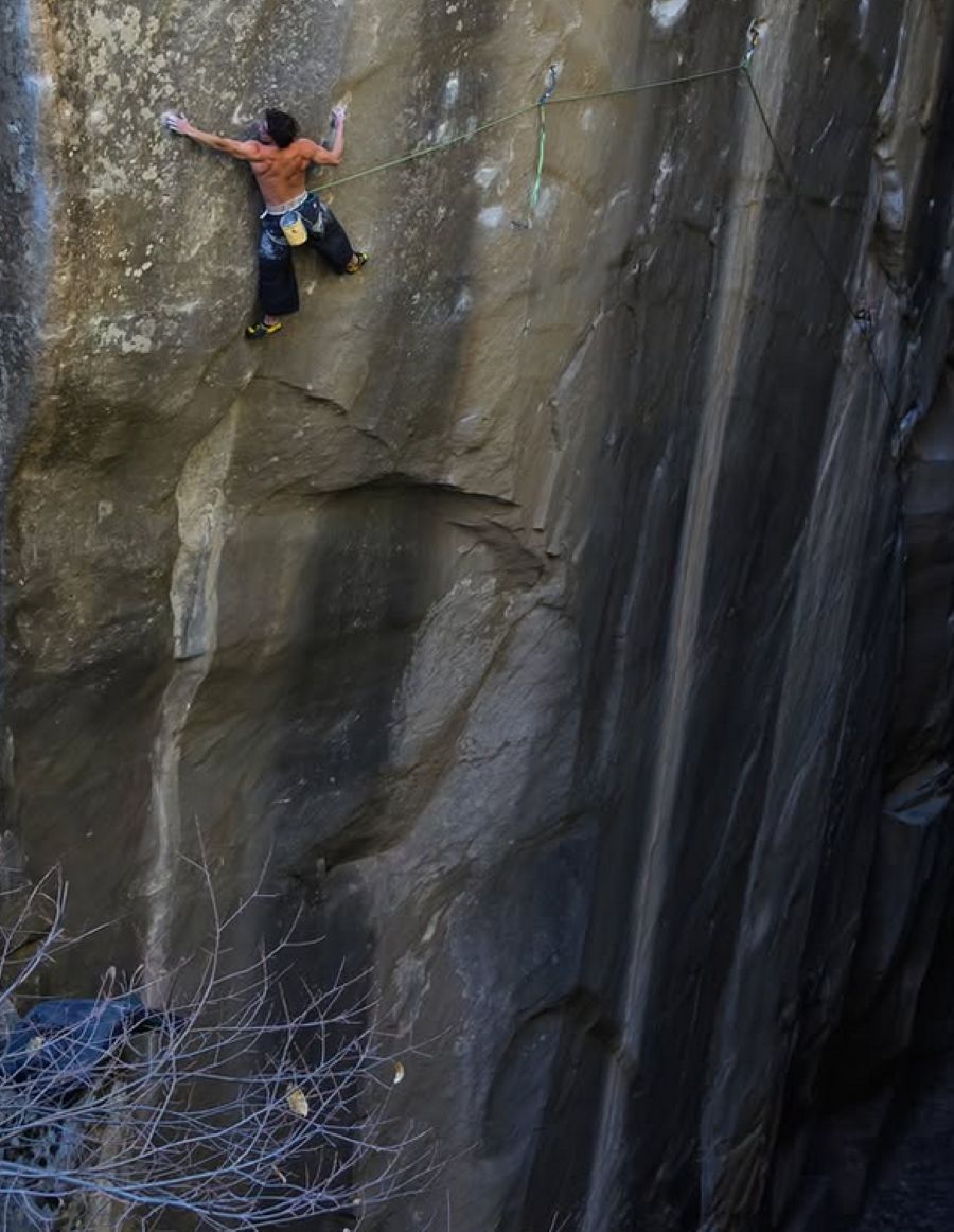 “Mi sono sentito abbastanza sicuro” ha detto Daligault su 8a.nu. “Le protezioni sono buone. Ho piazzato circa dieci pezzi, soprattutto lungo lo strapiombo dove l’arrampicata è più difficile. Ho posizionato un friend della misura 0.3, con sotto uno 0.2 nel caso in cui non reggesse. Ho usato le protezioni fisse durante i primi tentativi, ma non durante la salita in libera”.