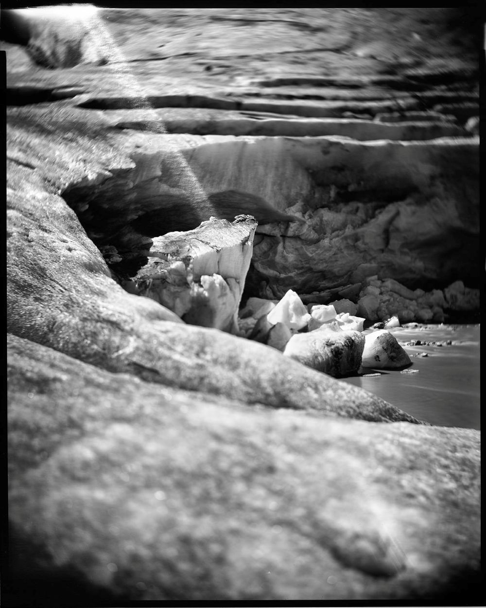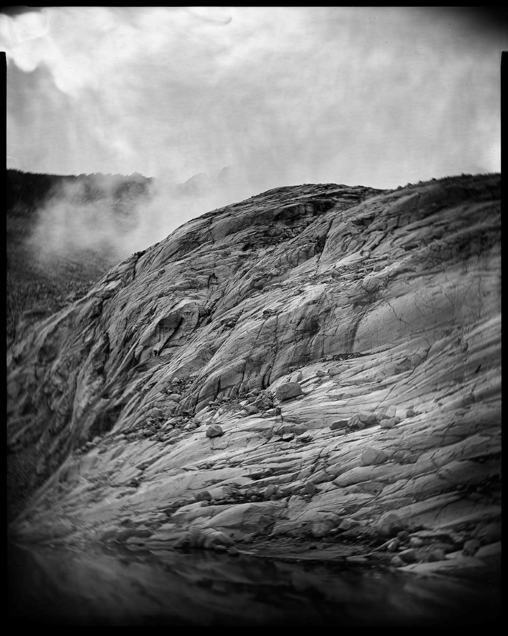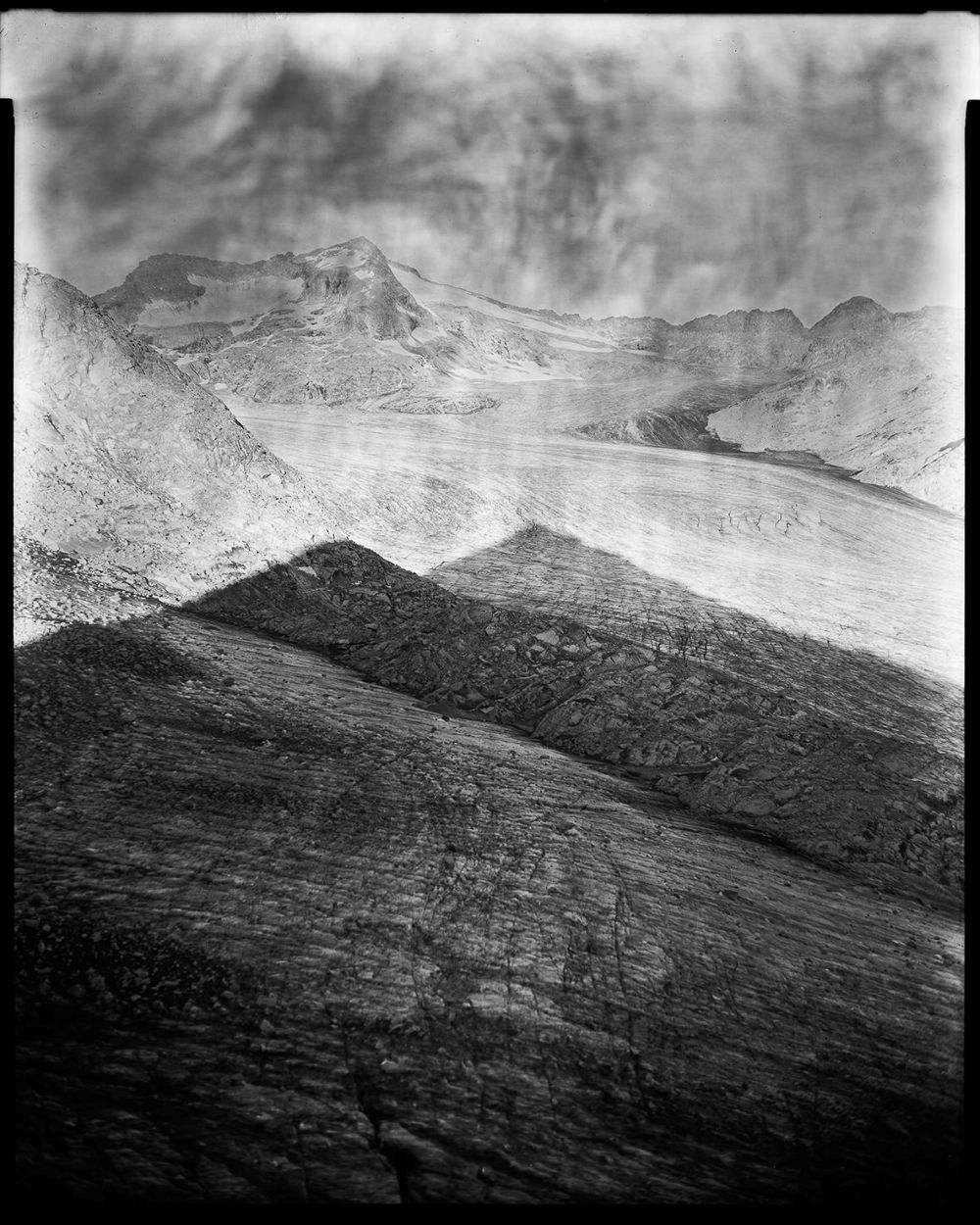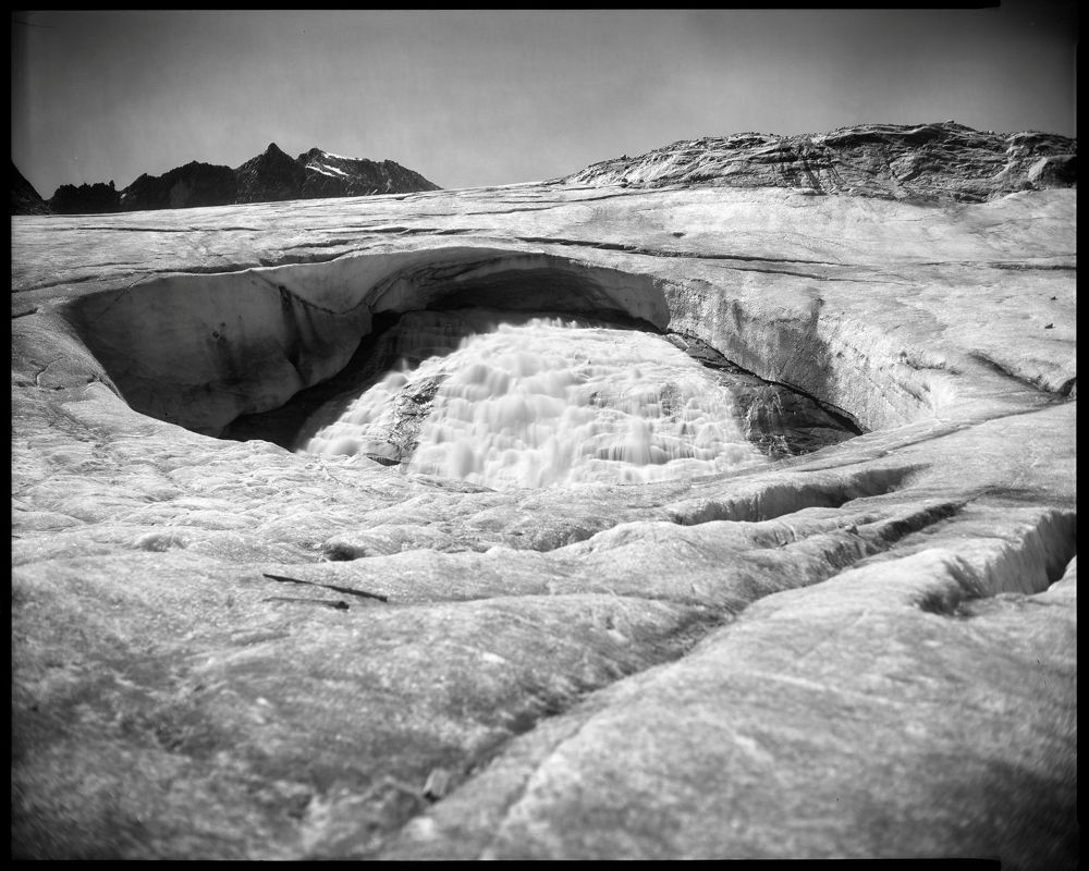 L’idea di fotografare il ghiacciaio con l’impegnativa tecnica del Grande formato analogico è sfidante e -nell’era delle piattaforme social – quasi provocatoria. Il pensiero che lenti nate da mani artigiane tra metà Ottocento e primi Novecento possano essere oggi testimoni di un momento così epocale induce a riflettere sulla rapidità del cambiamento in atto: ciò che sembrava eterno alcuni secoli fa, oggi appare sull’ineluttabile discesa accelerata di un ripido piano inclinato. Il risultato rappresenta visivamente quella che oggi è una delle sfide più importanti per il genere umano: la necessità di preservare, per le future generazioni, le regioni di alta quota che custodiscono una parte essenziale delle riserve idriche del pianeta.