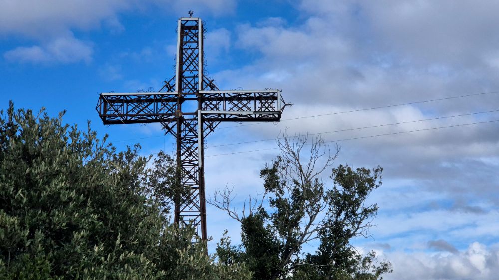 Dei cartelli indicano a destra la Strada militare, una carrareccia che sale con qualche svolta, e prosegue nella macchia, affiancata da rari segnavia bianco-rossi. Si risale il crinale della Costa delle Capanne, ci si alza con altre svolte e si sbuca sulla strada asfaltata che sale dal Convento dei Passionisti al Monte Telegrafo. Costeggiando una linea elettrica, o più comodamente seguendo la strada a sinistra e poi un viottolo a destra, si raggiunge la Croce del Predicatore (o Monumentale, 495 m, 0.45 ore), affacciata verso Orbetello, la sua Laguna e la Maremma.